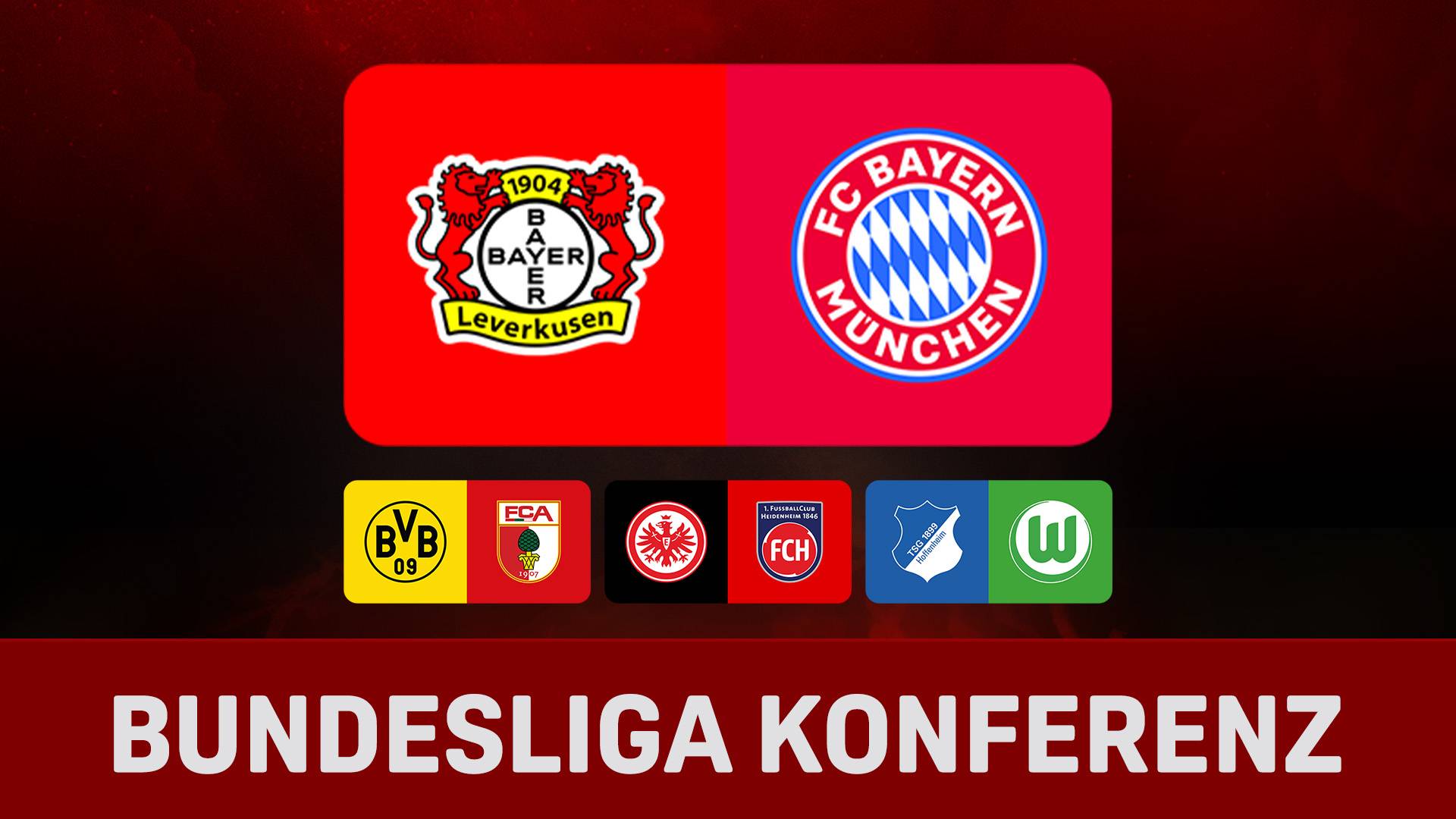 Partien: Bayer 04 Leverkusen - FC Bayern München (Kommentator: Marco Hagemann), Borussia Dortmund - FC Augsburg (Komm.: Lukas Schönmüller), Eintracht Frankfurt - 1. FC Heidenheim (Komm.: Florian Malburg) & TSG Hoffenheim - VfL Wolfsburg(Komm.: Tom Kirsten) // Moderator: Freddy Harder / Experte: Michael Ballack