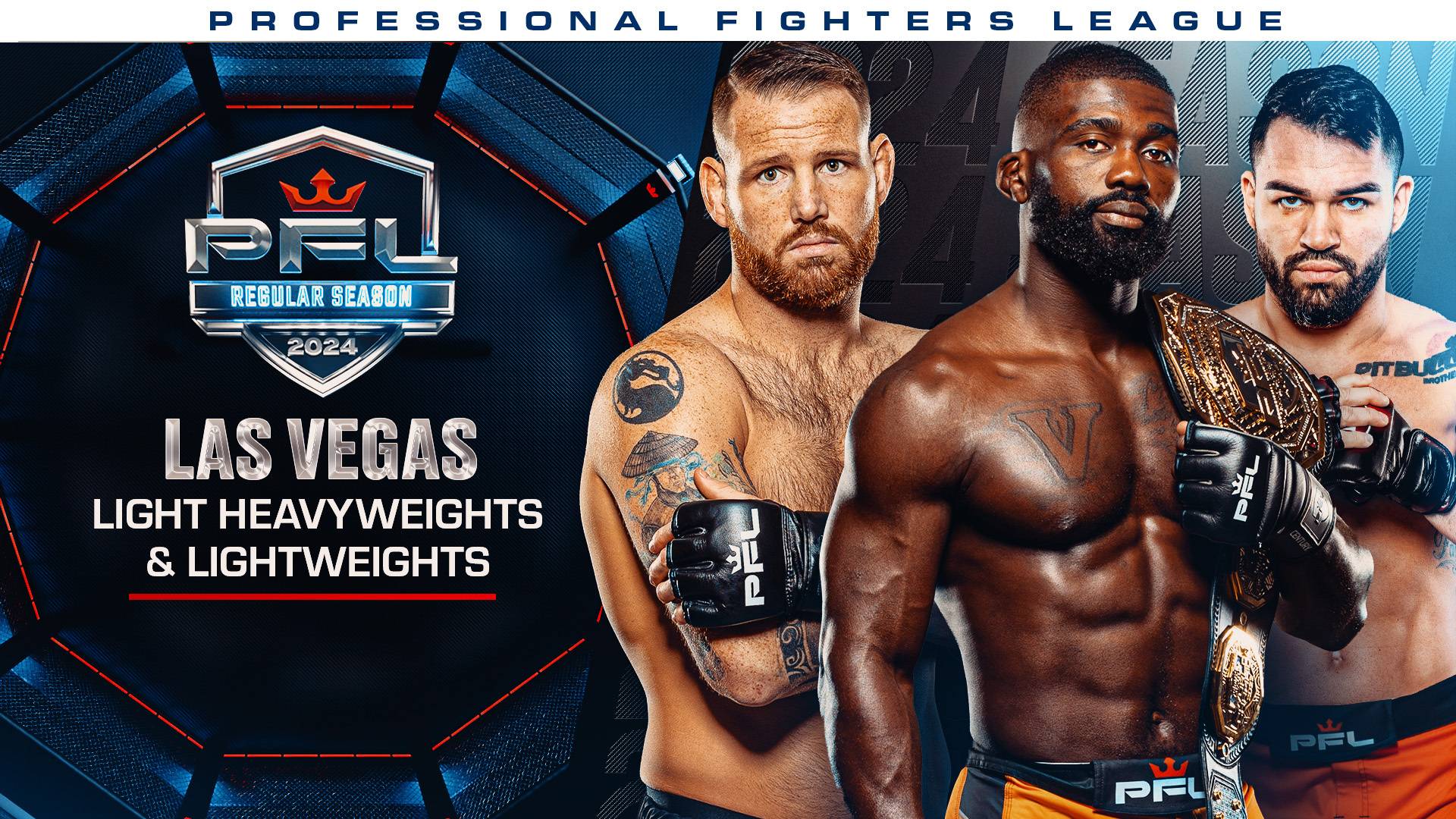 PFL returns to The Theater at Virgin Hotels in Las Vegas for the second night of the 2024 season. Former Bellator Light Heavyweight Champion Phil Davis headlines the card, taking on 2022 PFL Light Heavyweight Champion, Rob Wilkinson.