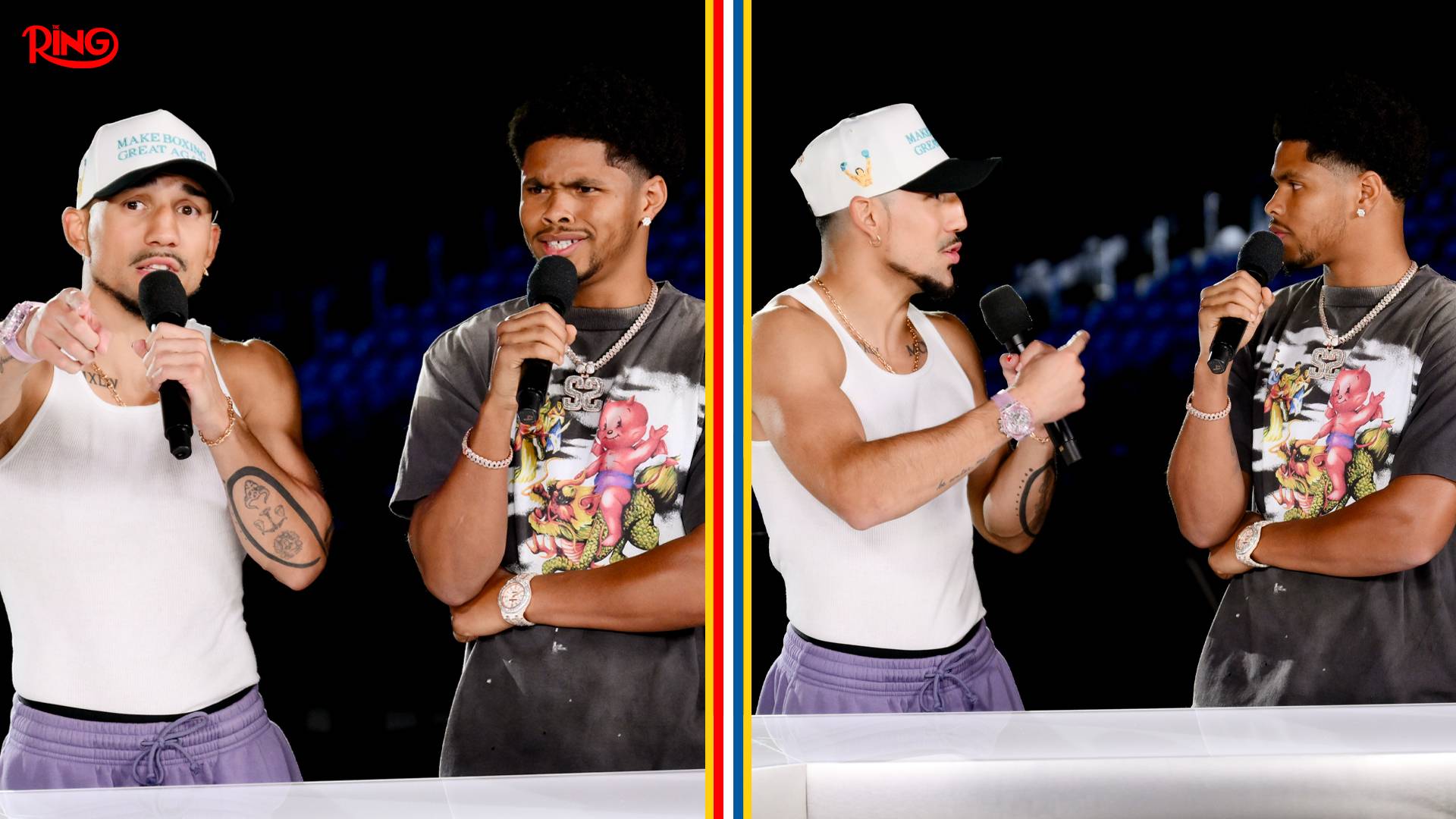 Take a look back at Teofimo Lopez and Shakur Stevenson exchanging words in September on Inside The Ring. The duo will go head-to-head in January 2026 at Ring 6, live on DAZN.