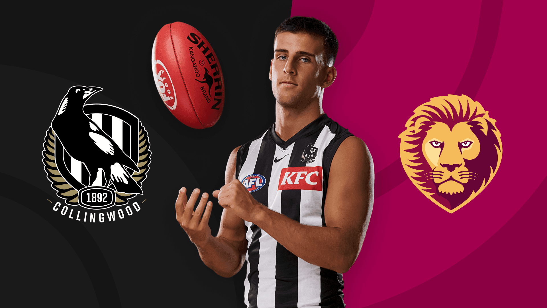 Watch Australian Rules Football action as Collingwood takes on Brisbane Lions