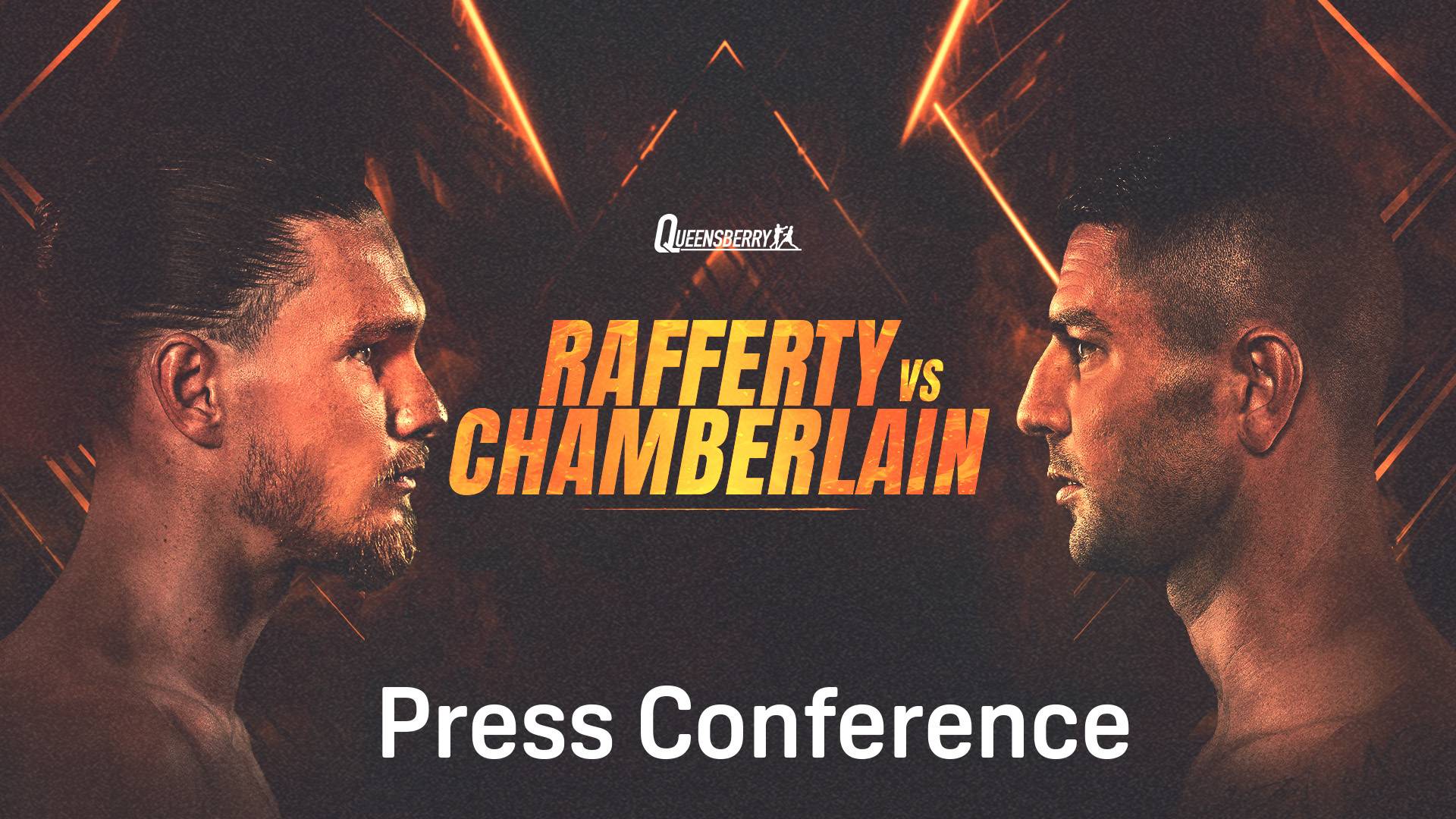 Jack Rafferty and Mark Chamberlain exchange words at the pre-fight press conference, ahead of their British and Commonwealth super lightweight showdown.