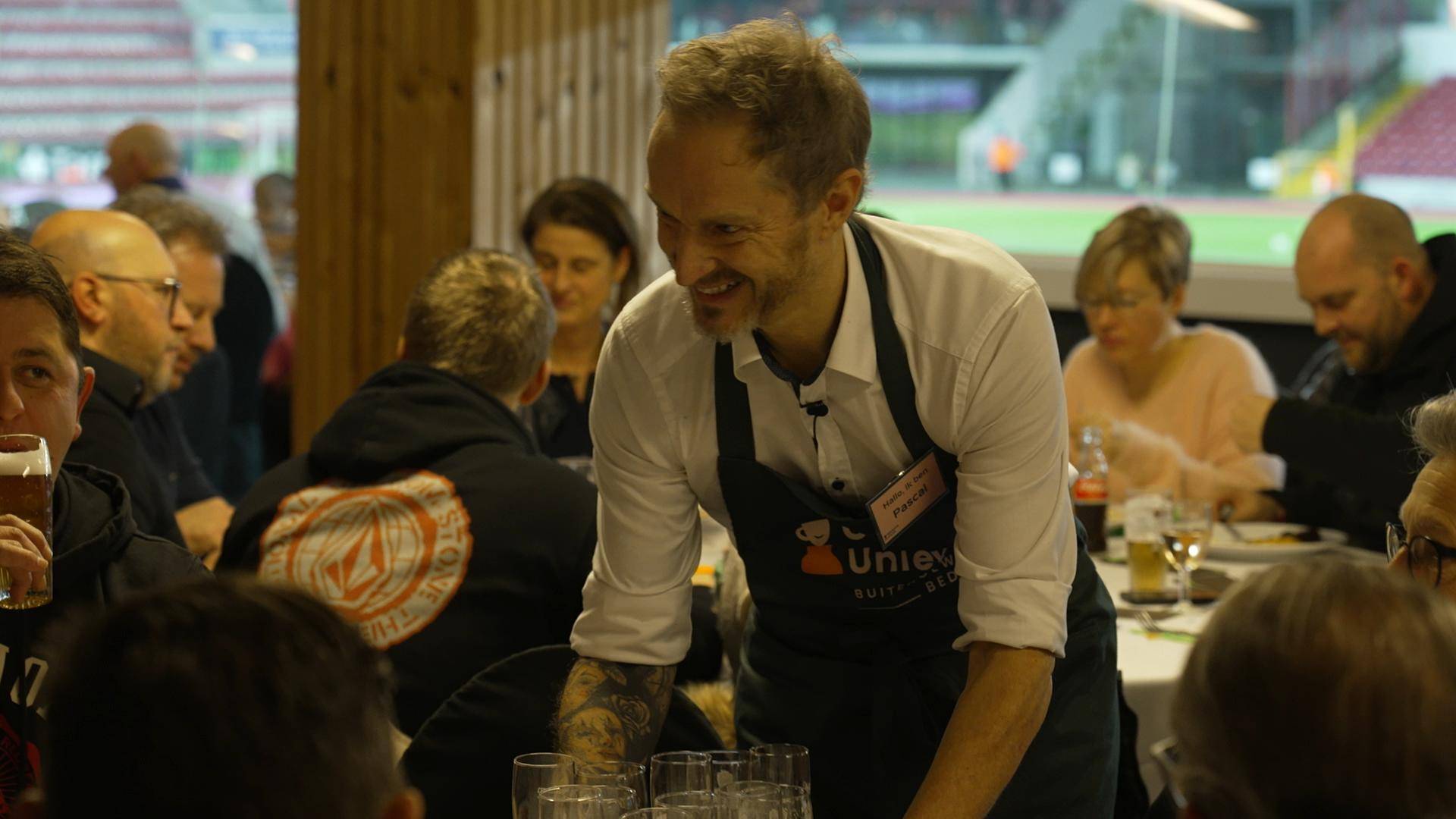 At Zulte Waregem, the Essevee Foundation's annual day was dedicated to people with mental and physical disabilities. During the dinner for supporters, the Garsons Uniek came to lend a hand.
