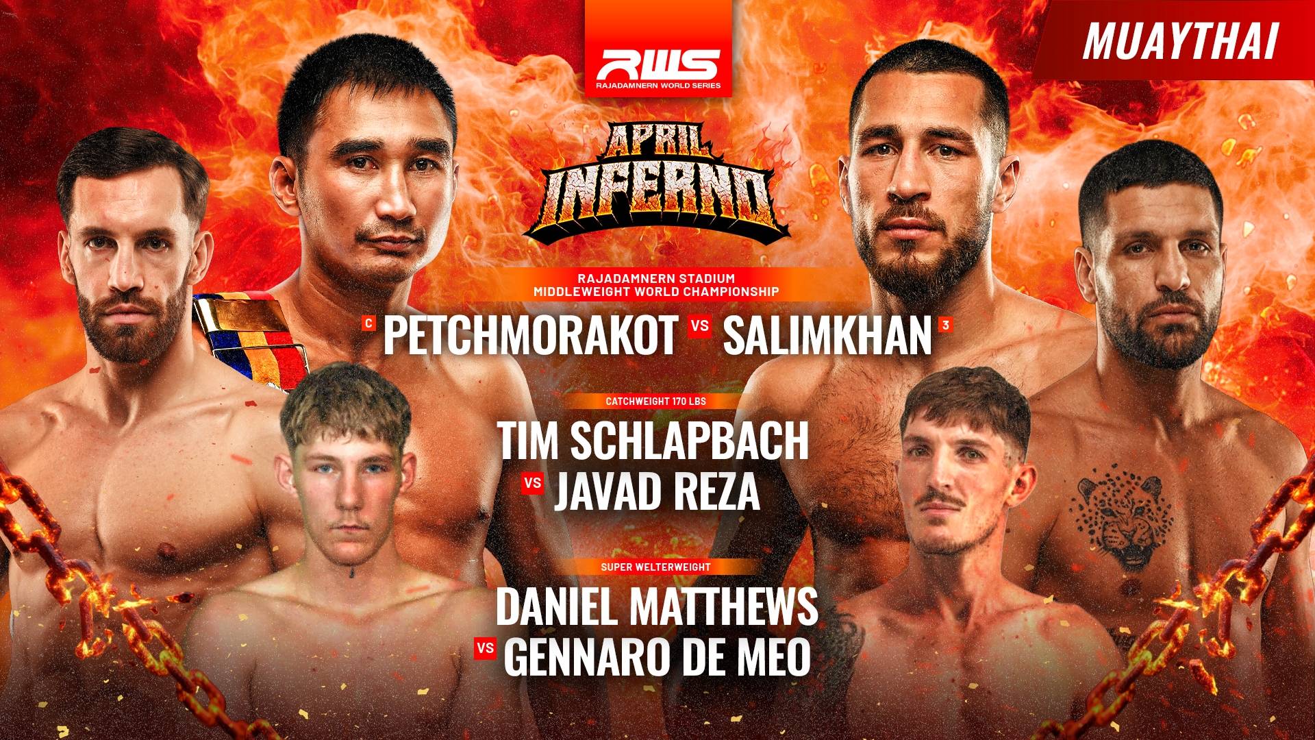 Watch Mixed Martial Arts Rajadamnern World Series Muay Thai action as Petchmorakot takes on Salimkhan Ibragimov.
