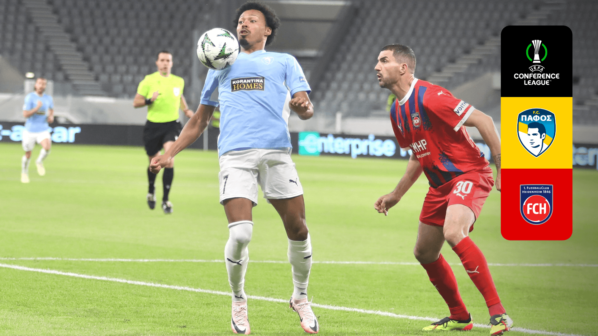 Watch Pafos take on Heidenheim in the UEFA Conference League.