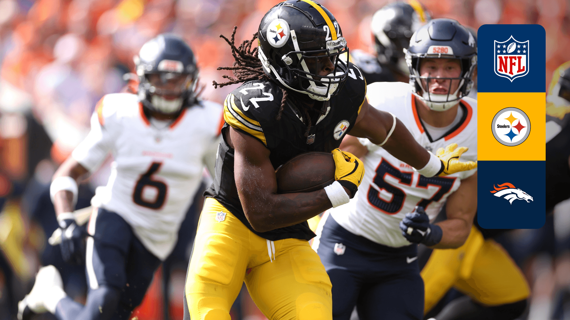 Watch American Football action as Denver Broncos takes on Pittsburgh Steelers.