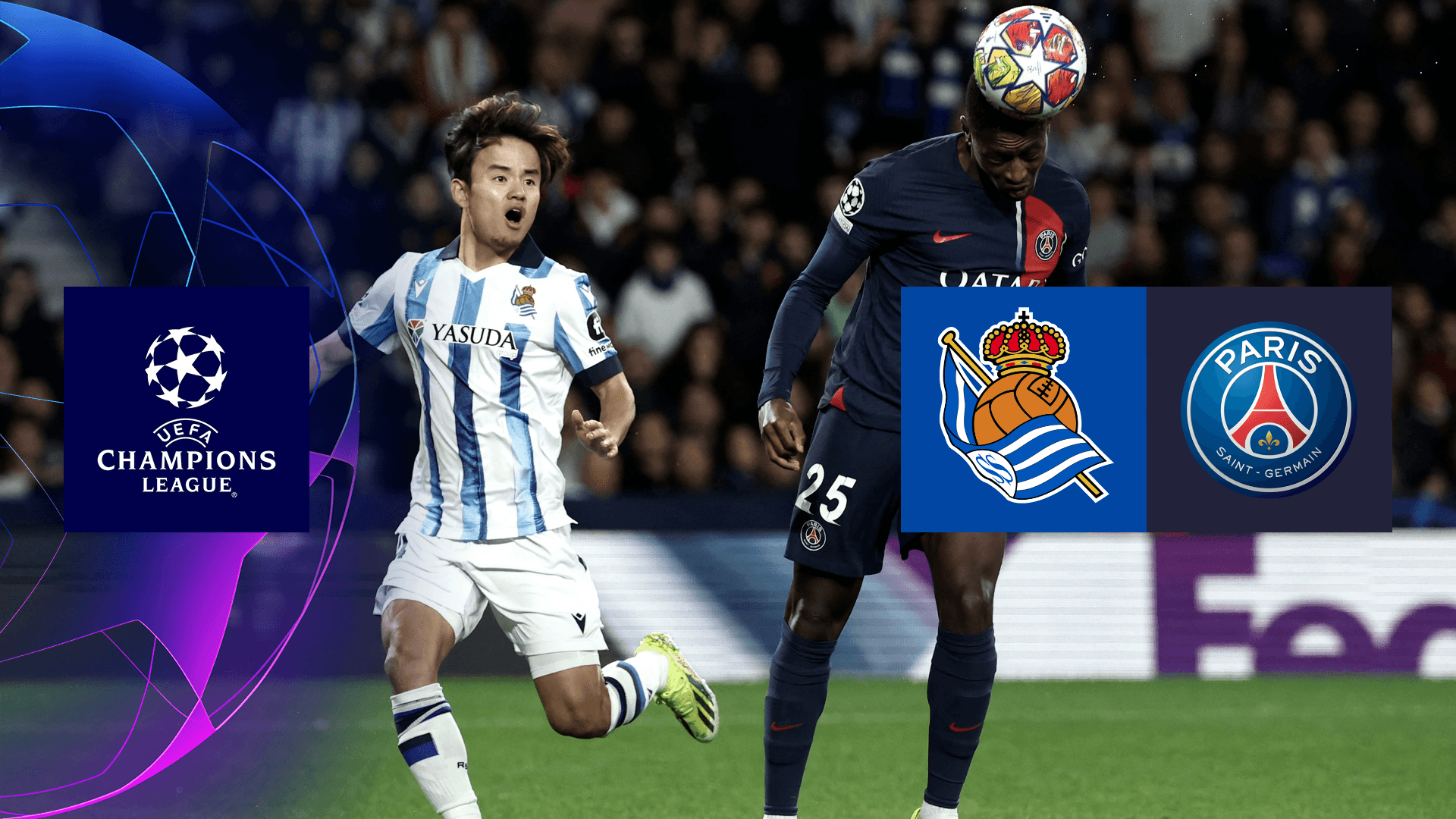 Watch UEFA Champions League Soccer action as Real Sociedad takes on PSG