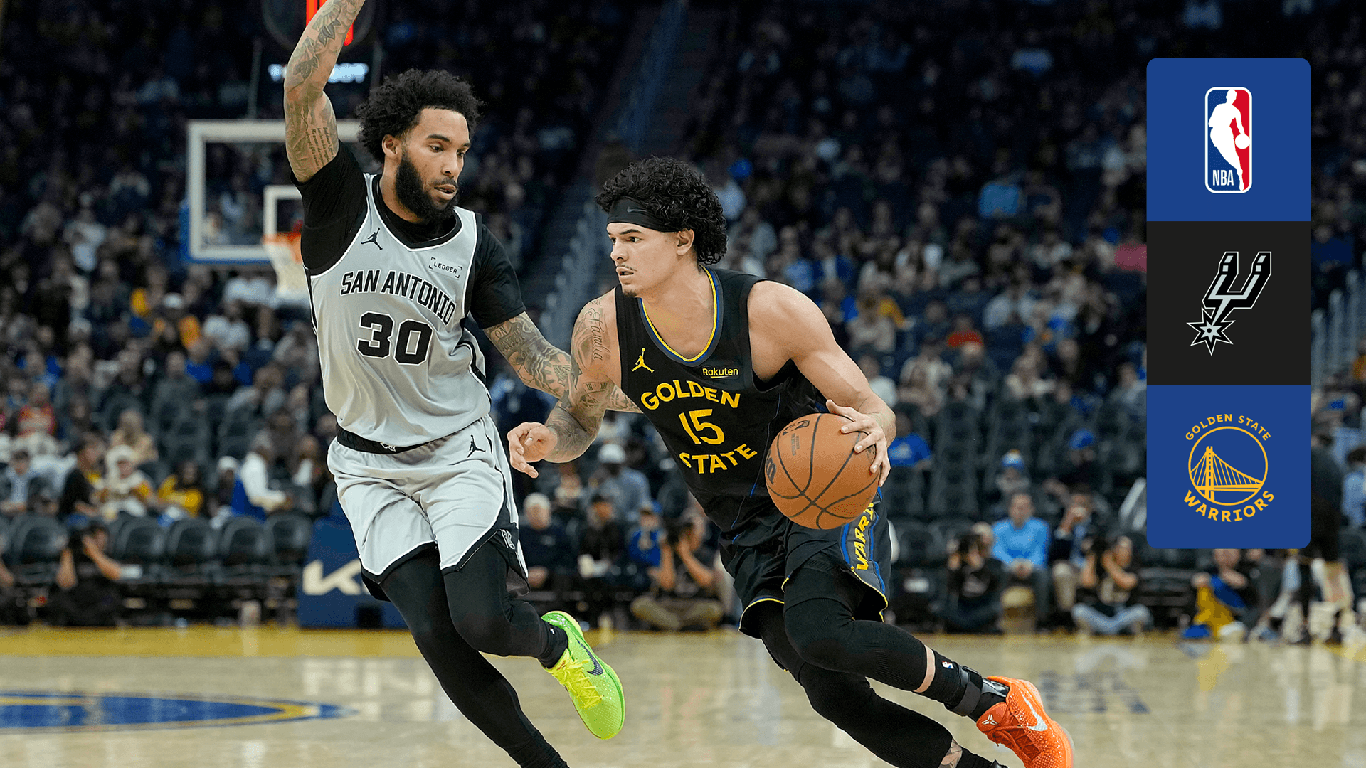 Watch NBA Basketball action as Spurs takes on Warriors.