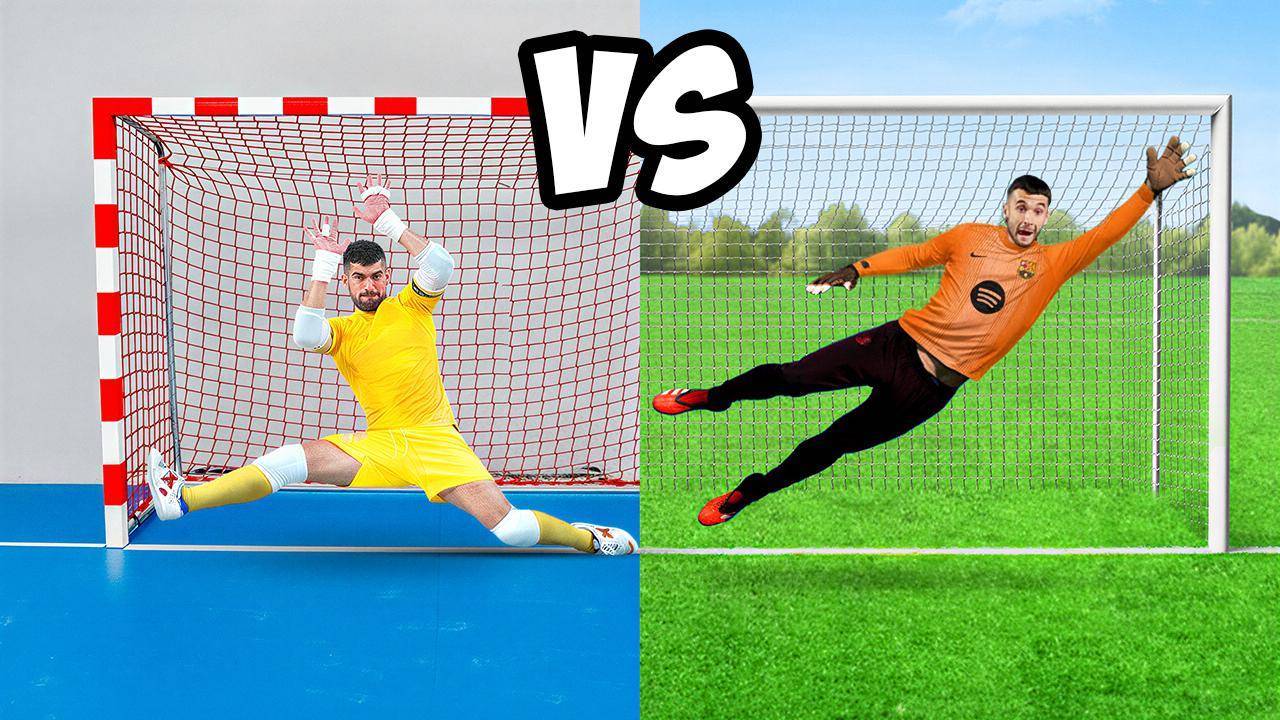 Hoy voy a enfrentar a un portero de fútbol sala contra un portero de fútbol 11… Y por cada parada van a ganar 100 euros. ¿Quién ganará?