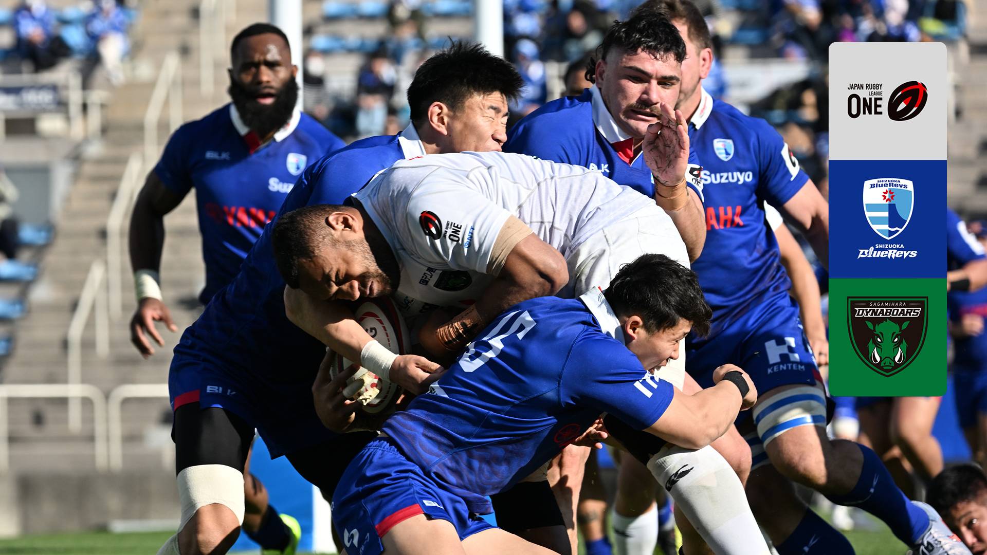 Watch Rugby Union action as Sagamihara Dynaboars takes on Shizuoka Blue Revs