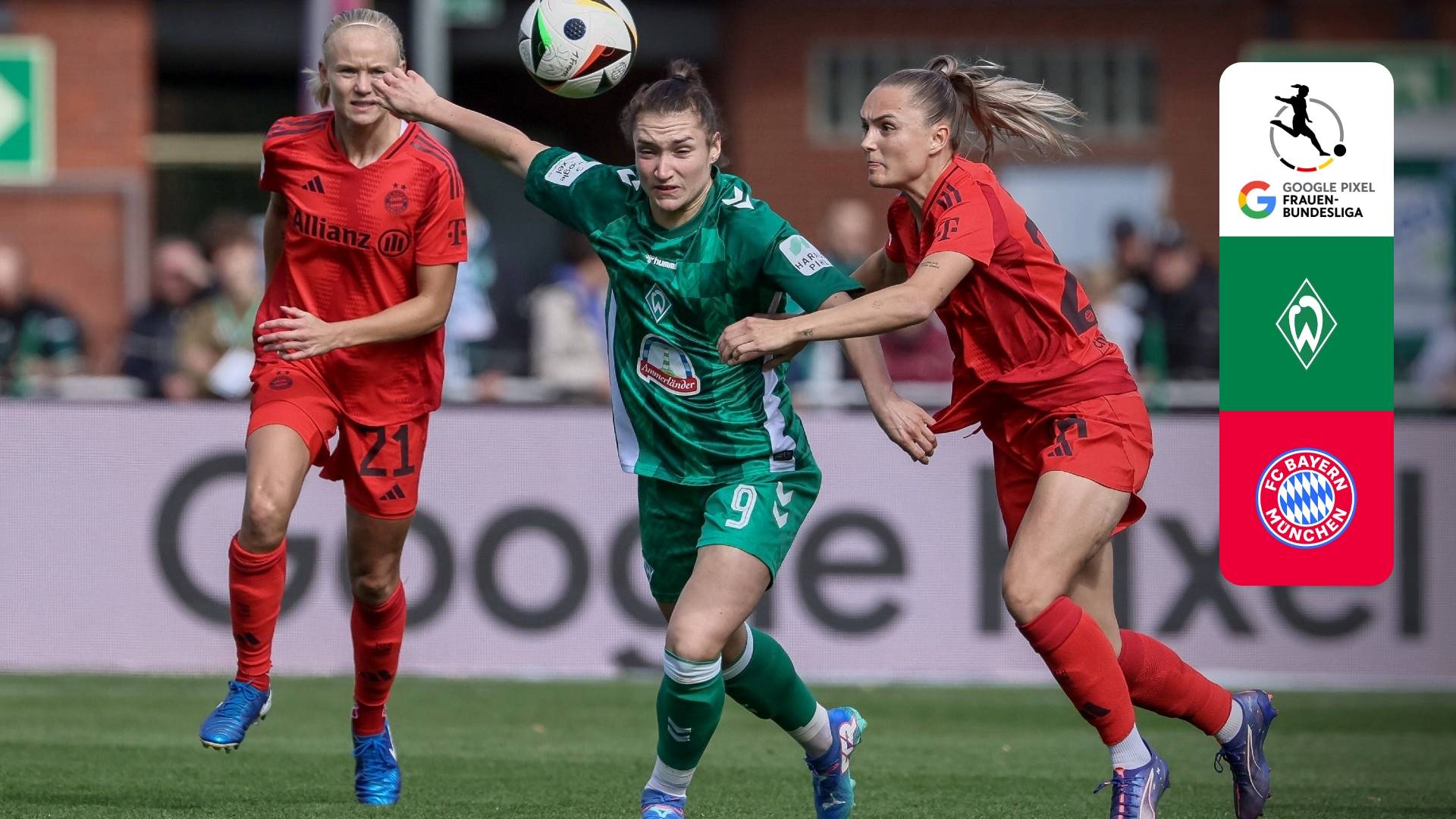 Watch Frauen Bundesliga Soccer action as Werder Bremen takes on Bayern München.
