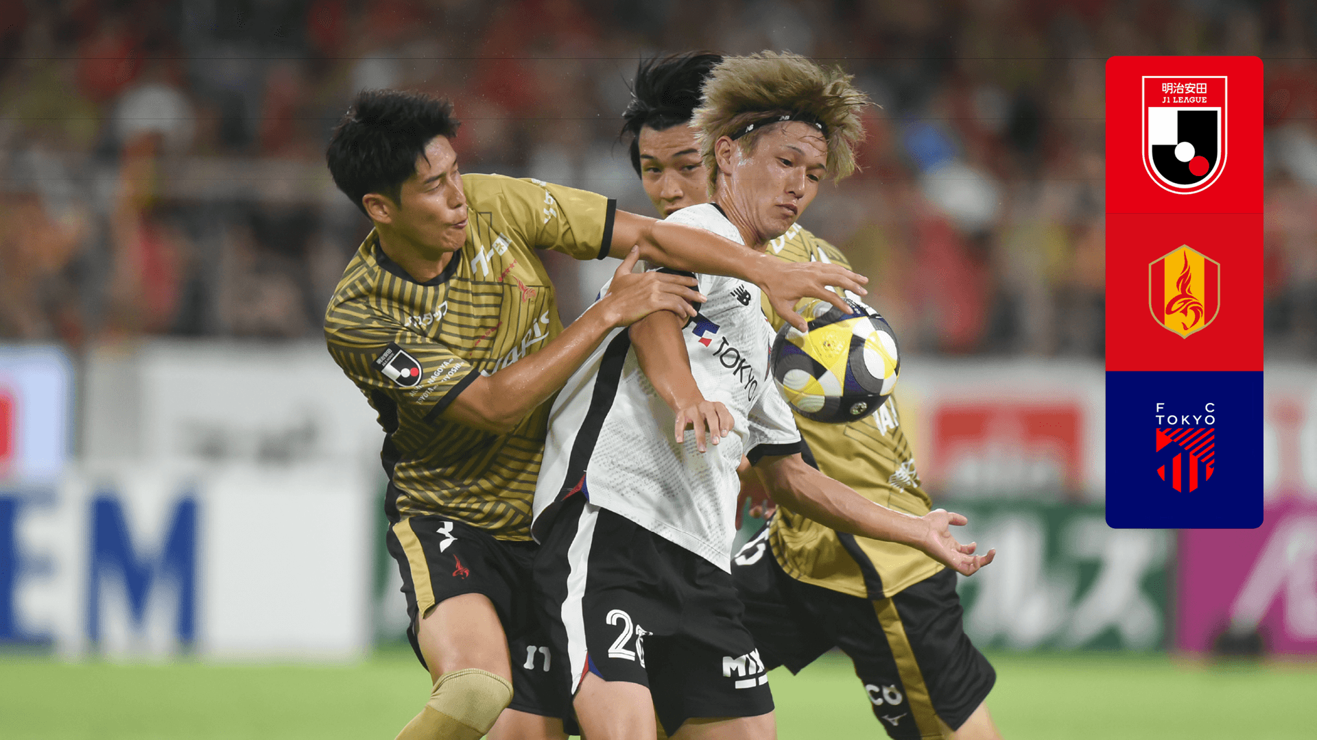 Watch J1 League Soccer action as Nagoya takes on FCTokyo.