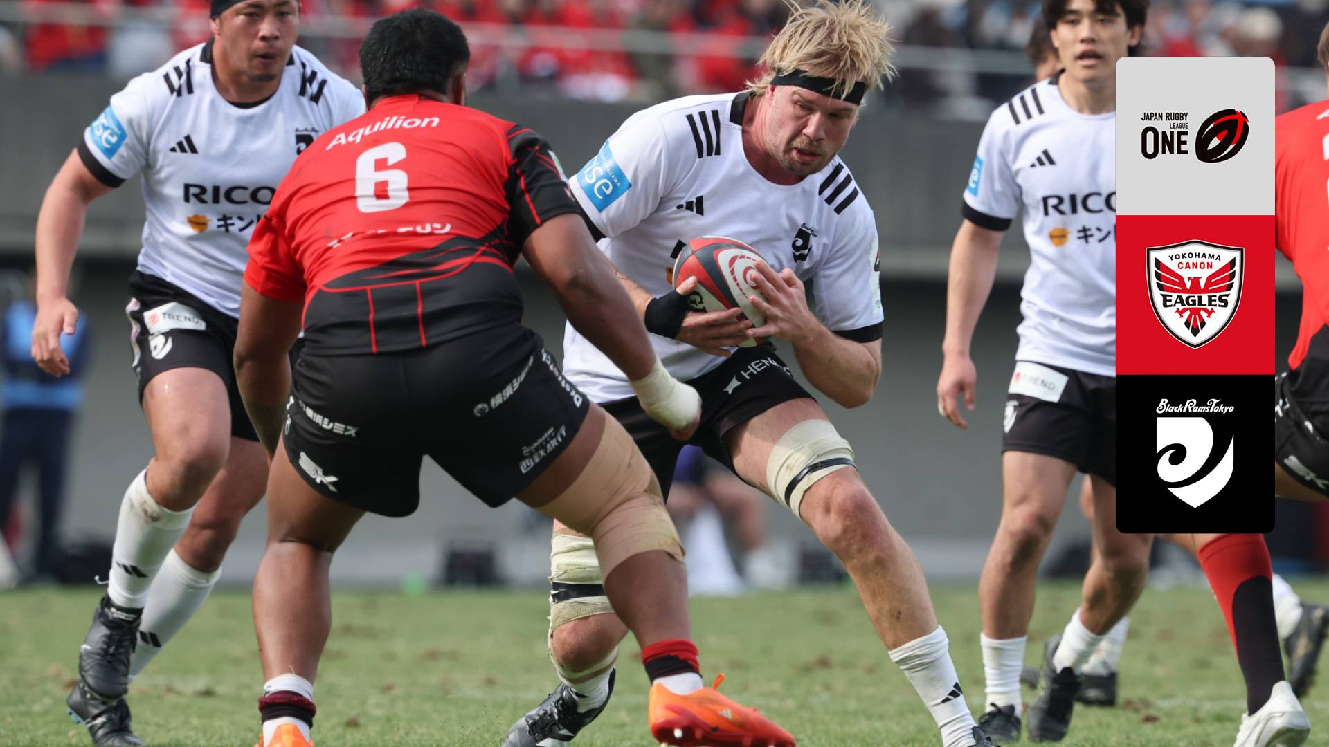 Watch Rugby Union action as Canon Eagles takes on Black Rams Tokyo
