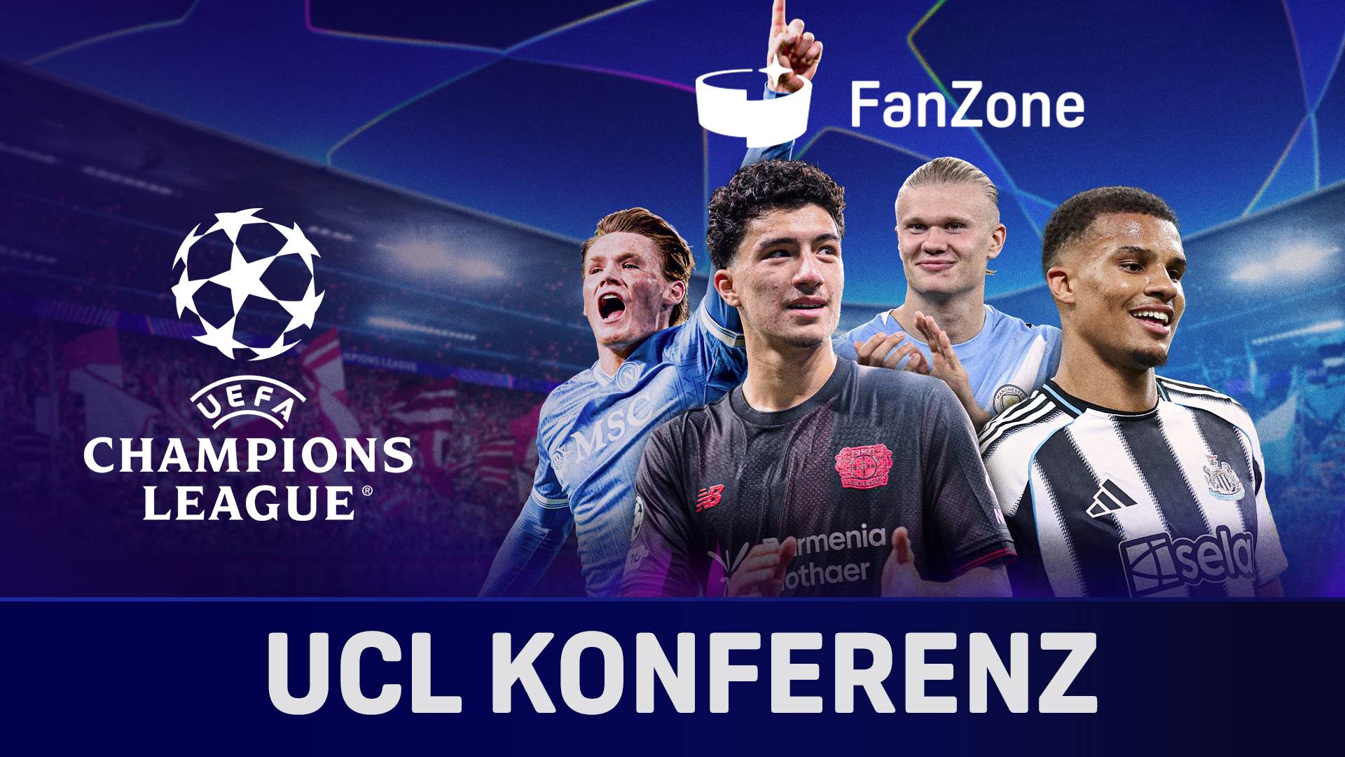 Manchester City - Bayer Leverkusen (KOM: Lukas Schönmüller), Chelsea - FC Barcelona (KOM: Marco Hagemann), Bodö/Glimt - Juventus (KOM: Nico Seepe), Marseille - Newcastle (KOM: Jan Platte), Prag - Bilbao (KOM: Oliver Forster), Neapel - Qarabag (KOM: Max Gross) / Moderator: Daniel Herzog // Vorberichte ab: 20:15 Uhr / Anpfiff: 21:00 Uhr.
