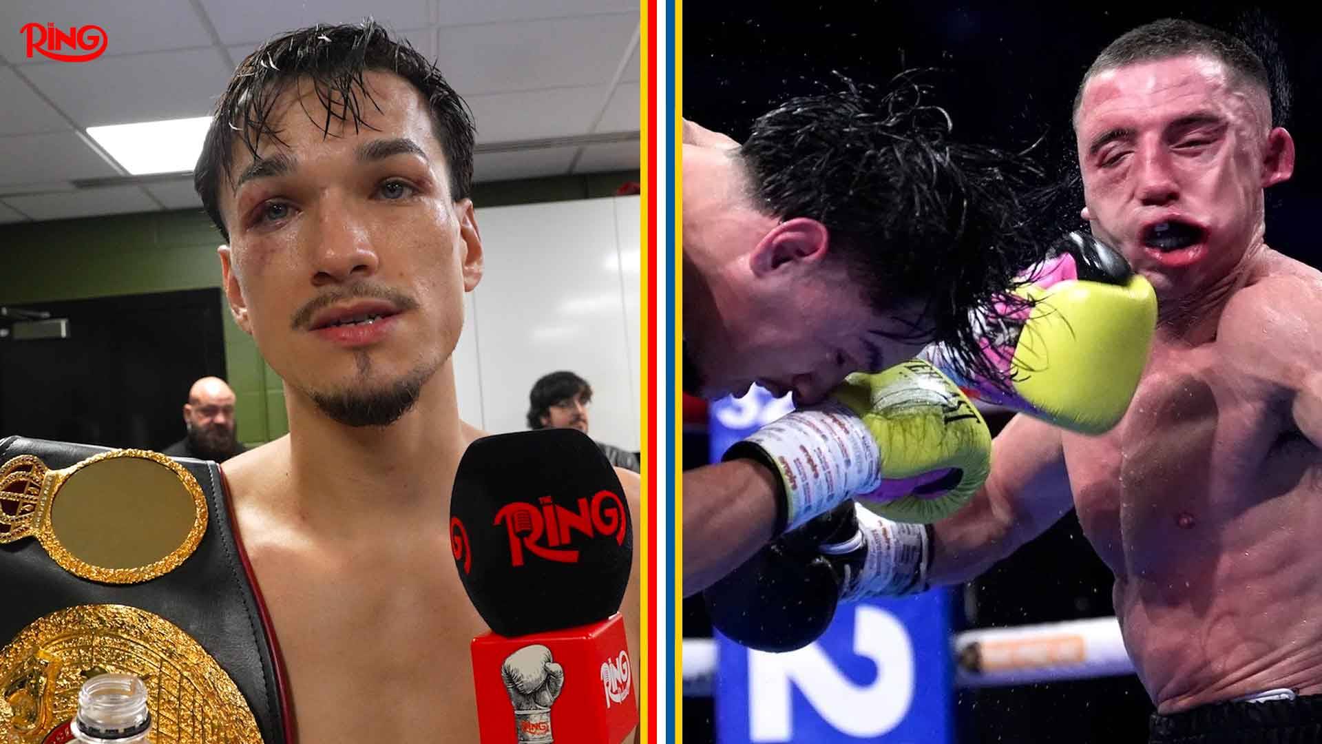 Brandon Figueroa reacts to his 12th round knockout of Nick Ball.
