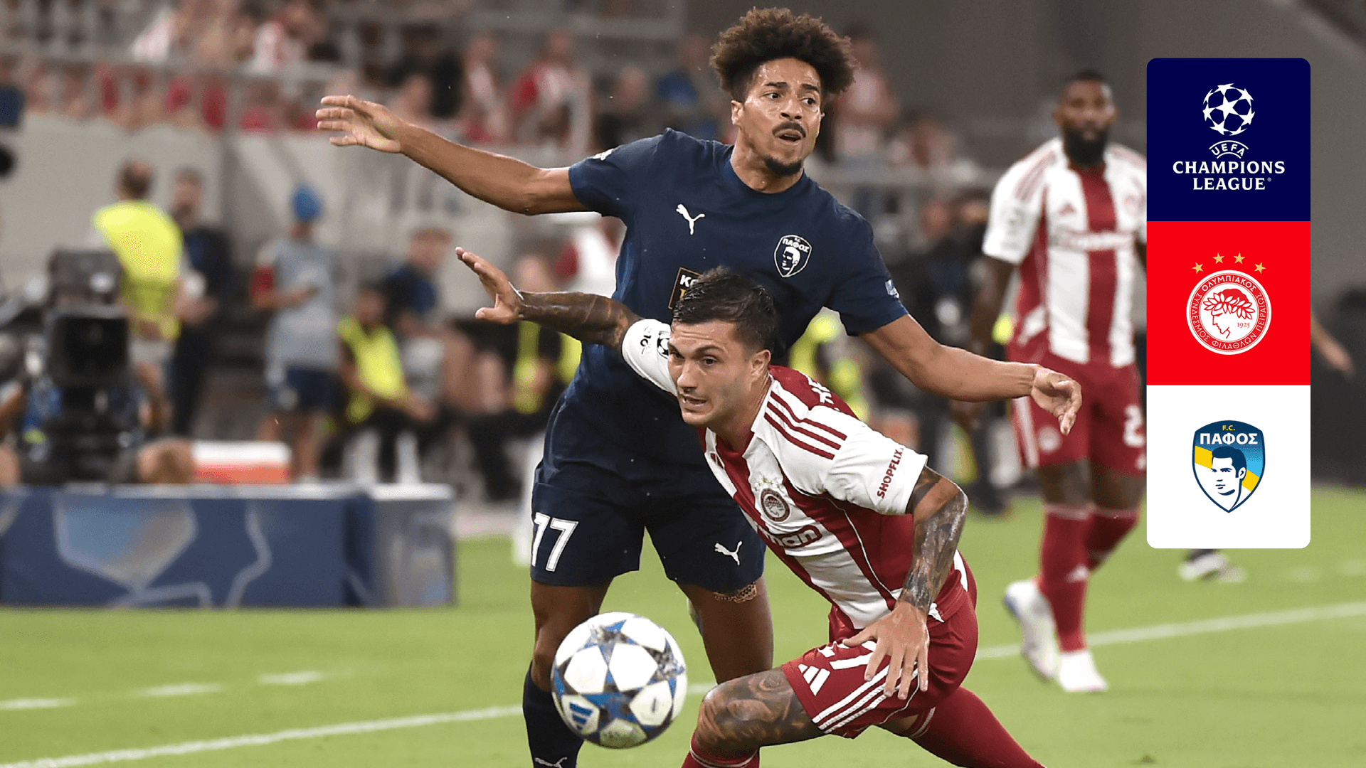 Watch Olympiacos take on Pafos in the UEFA Champions League.