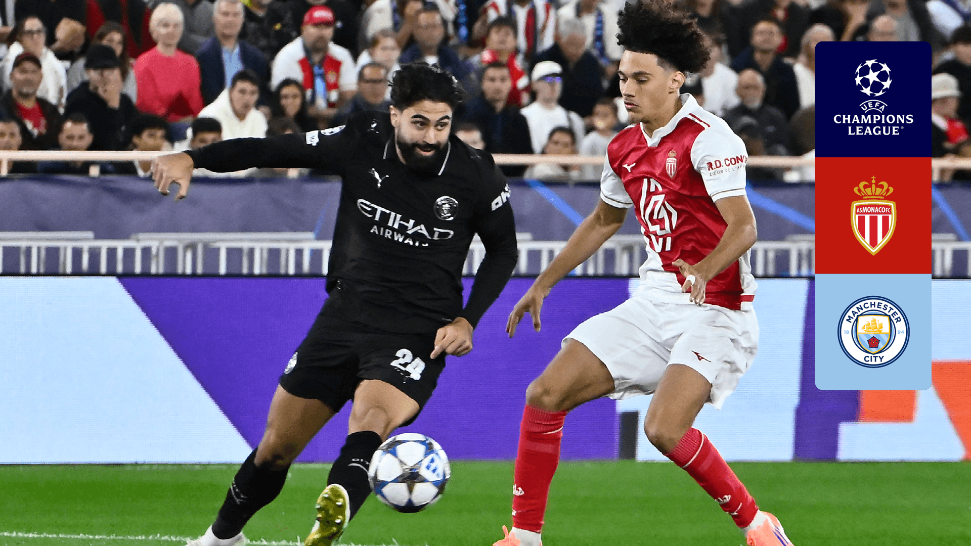 Watch the match between Monaco and Manchester City in the 2nd round of the UEFA Champions League league phase.