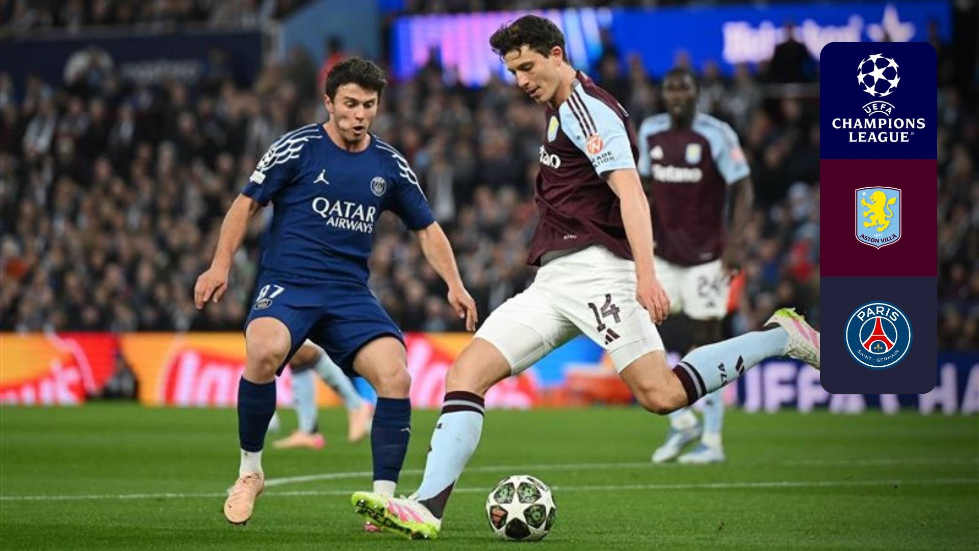 Watch the match between Aston Villa and Paris Saint-Germain for the quarter-finals 2nd leg of UEFA Champions League.