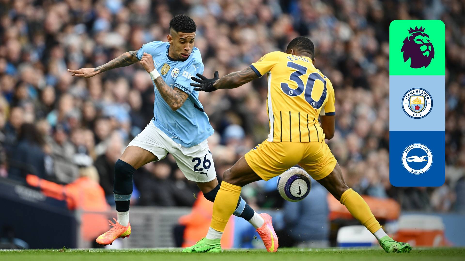 Watch the match between Manchester City and Brighton & Hove Albion for the 29th round of Premier League.