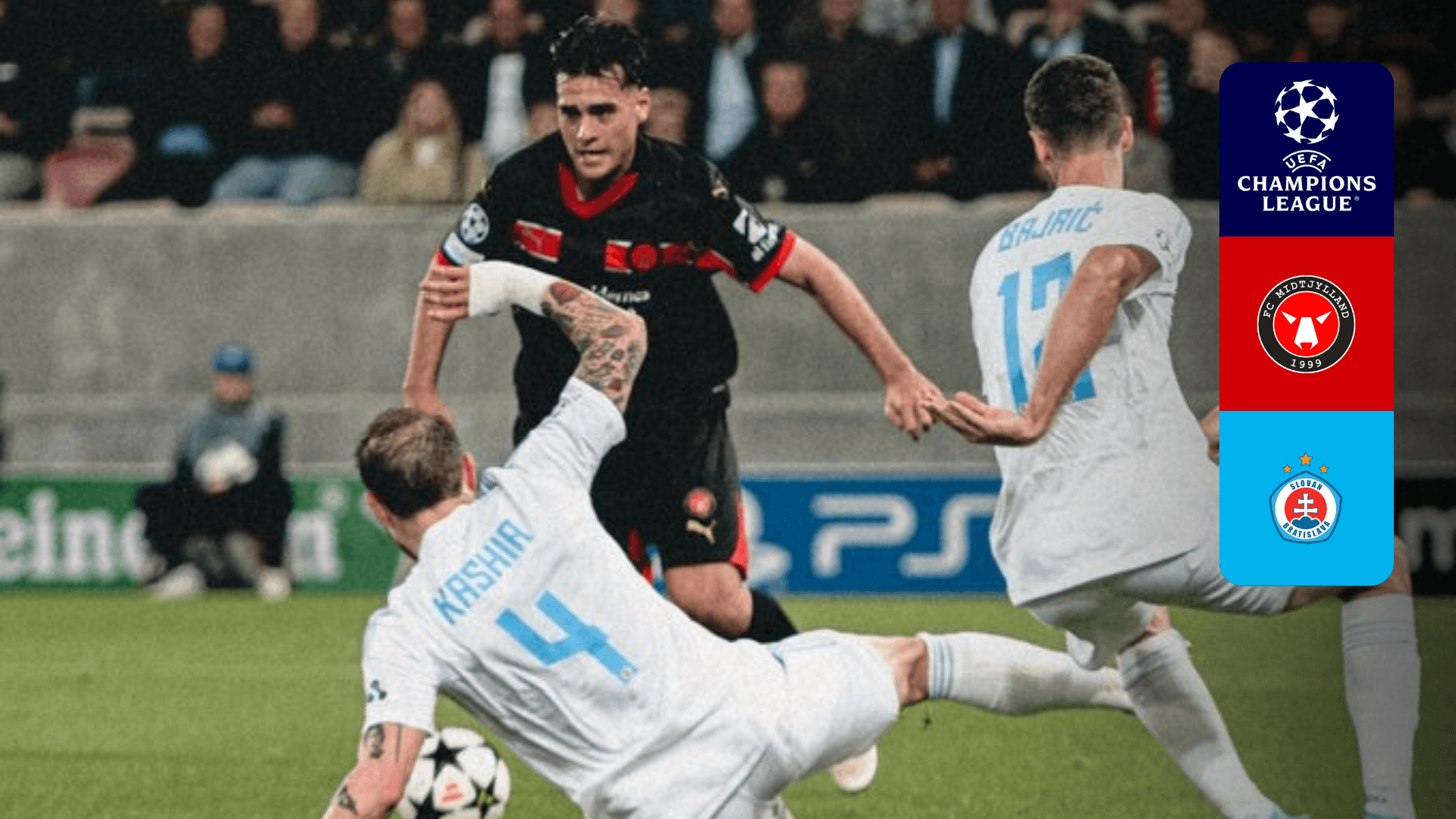 Watch the match between Midtjylland and Slovan Bratislava for the 1st leg of the UEFA Champions League playoffs.