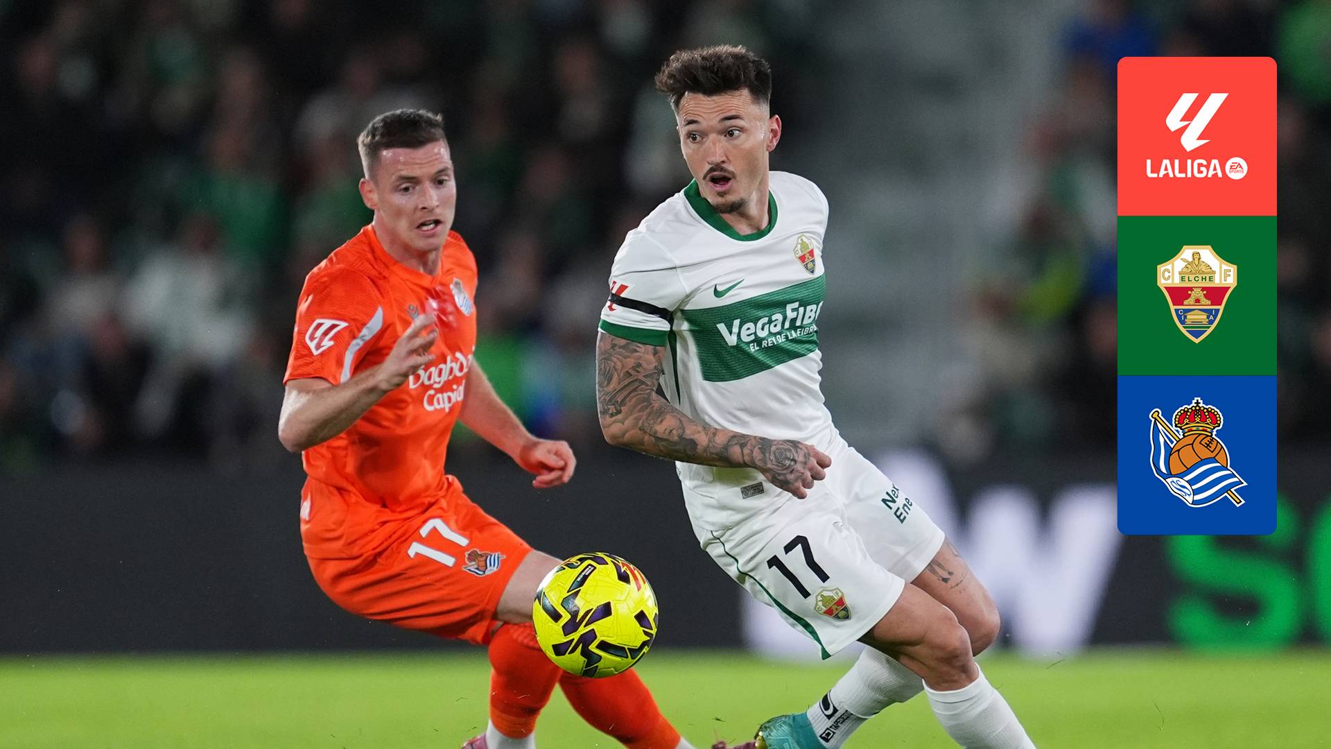 Narrador: Alex Guti. Comentaristas: Luis G Plaza y David Fer. Narrador en valencià: Domingo Lores. Narrador en euskera: Pedro Bezanilla. Equipo DAZN: Javi Valle. Disfruta en DAZN de una nueva jornada de LALIGA EA SPORTS y vive con nosotros el partidazo entre Elche CF - Real Sociedad. ¡No te lo pierdas!