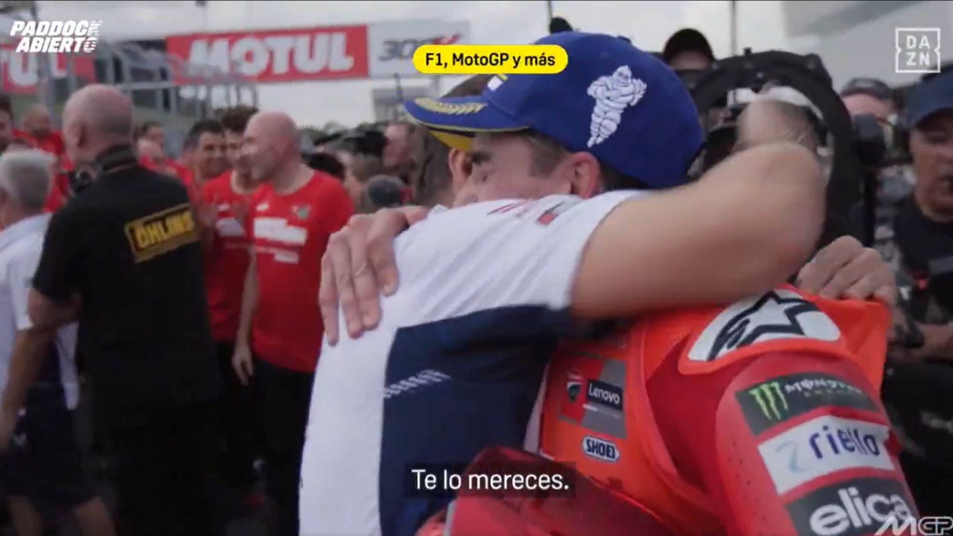 VÍDEO | Marc Márquez y el emocionante abrazo con el equipo de Honda tras ganar el Mundial de MotoGP