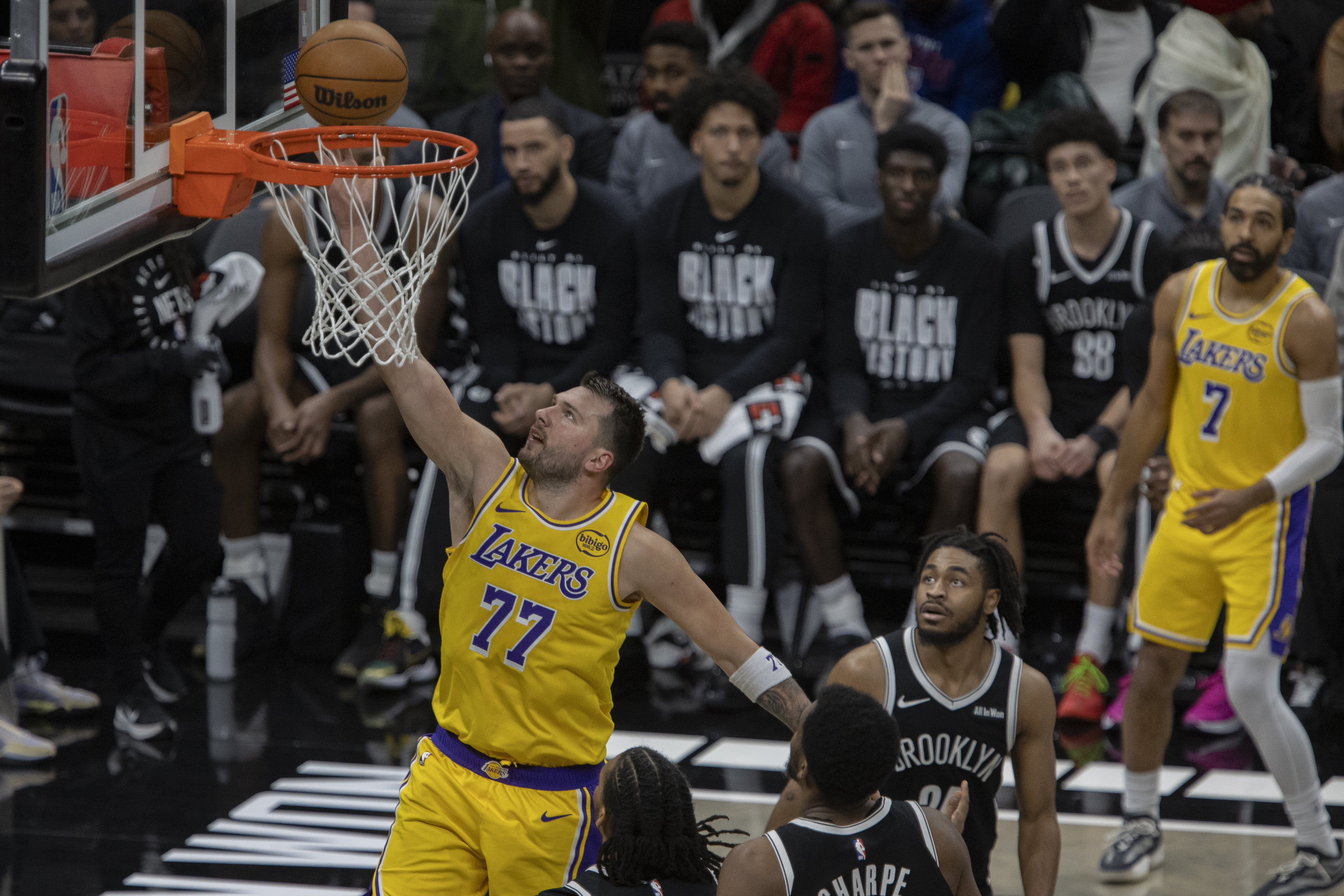 109-125. LeBron James se da un baño de masas en el paseo de los Lakers en Brooklyn