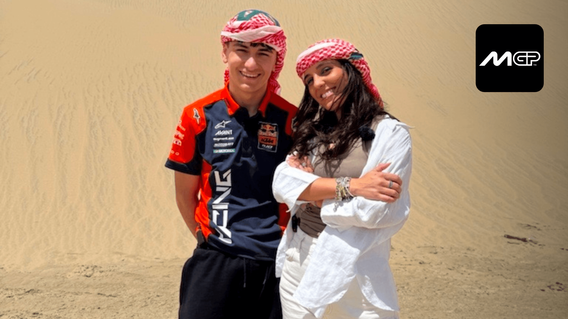 Amanda Gala y el piloto de Moto3, Álvaro Carpe, disfrutan del sanboard en el desierto de Catar mientras charlan en nuestra sección 'Fuera de Contexto'.