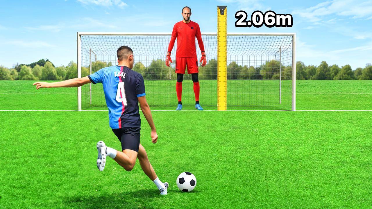 Hoy voy a enfrentarme al portero más alto de fútbol que he visto en mi vida. Mide más ¿? metros y ocupa media portería. Voy a ponerlo a prueba en cinco retos distintos para ver si realmente es imbatible. ¿Seré capaz de marcarle un gol?