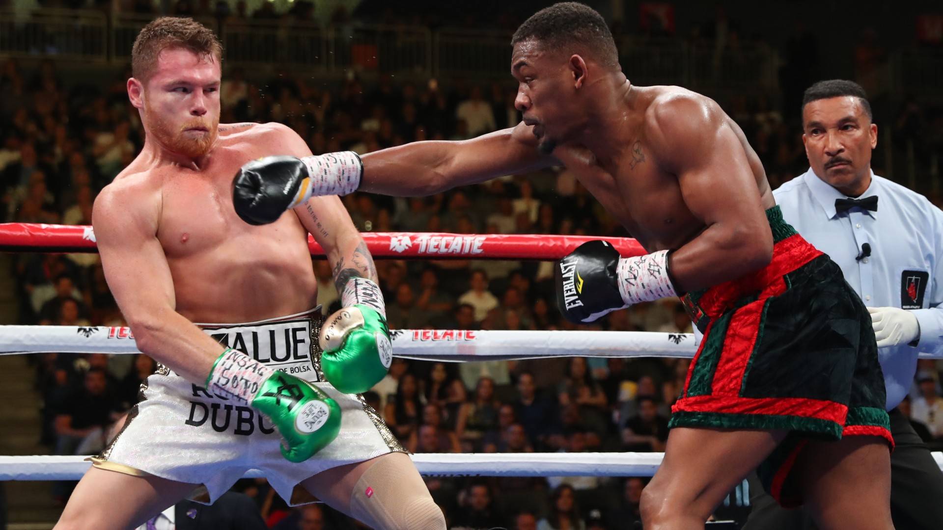 Saúl 'Canelo' Álvarez peleó ante el campeón IBF Daniel Jacobs. Canelo buscó ser el primer mexicano con tres títulos simultáneos, pero Jacobs quiso unificar la división de peso medio por segunda vez.