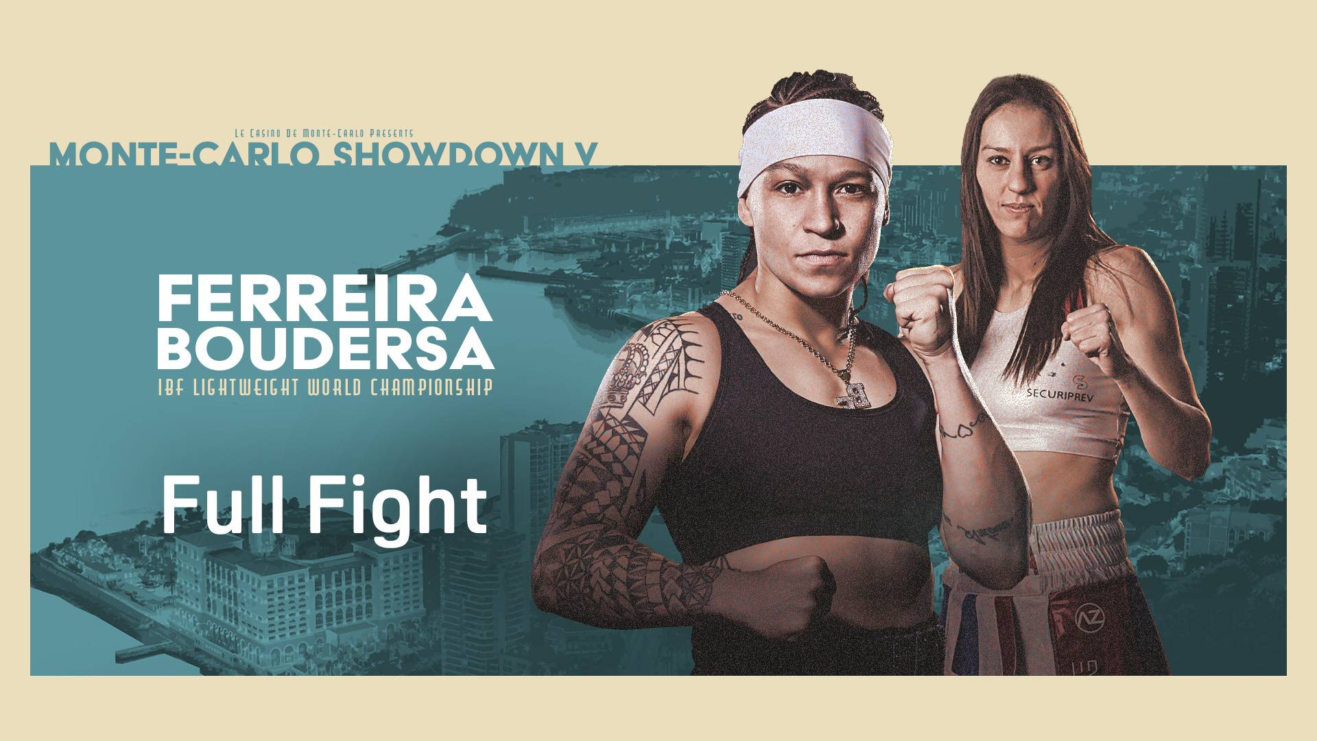 Disfruta de la repetición completa de la pelea de un fascinante combate por el campeonato en Monte Carlo, donde la estrella brasileña Beatriz Ferreira (5-0) buscaba retener su título de peso ligero de la FIB frente a Licia Boudersa (23-2-2).