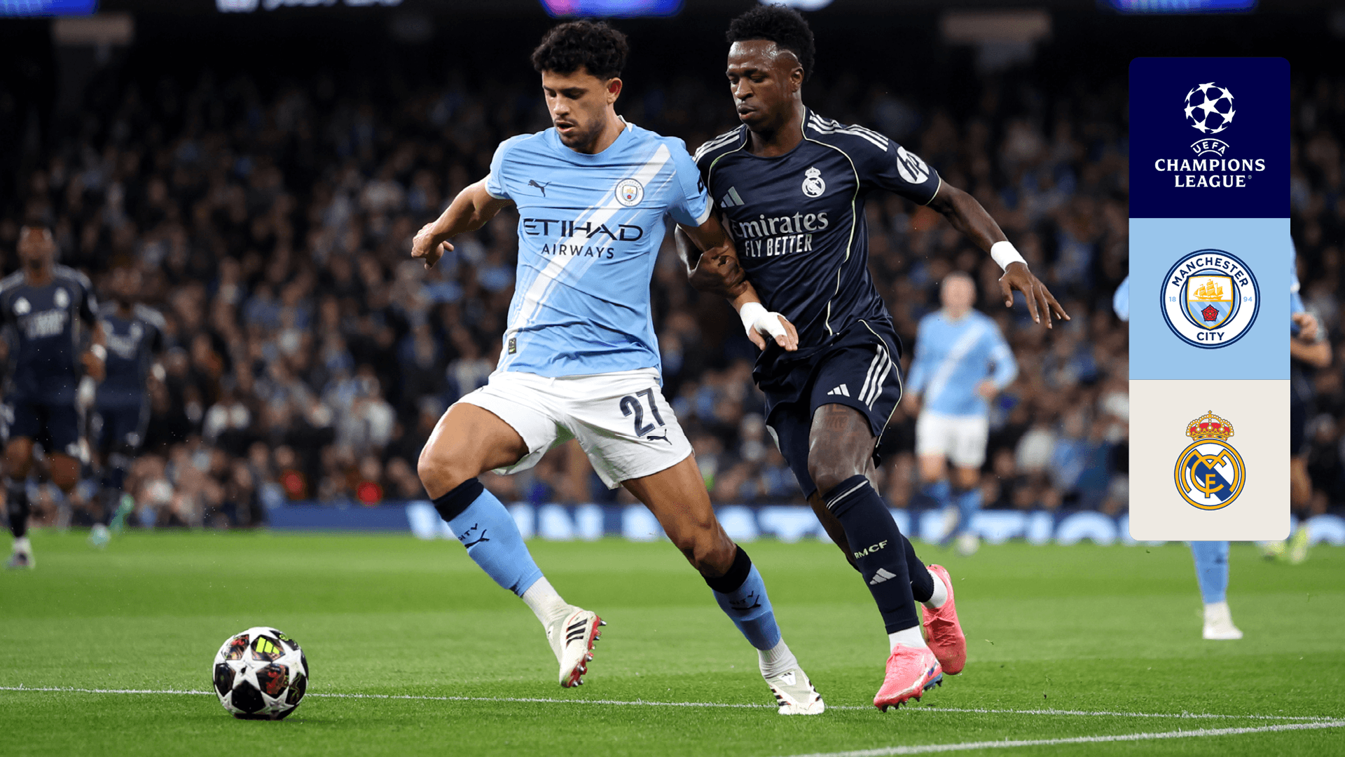 Los gigantes del fútbol europeo, Manchester City y Real Madrid, se enfrentarán en un emocionante duelo de la UEFA Champions League 25/26. El Etihad Stadium será escenario de este épico encuentro el 17 de marzo de 2026. ¿Será decisiva la ventaja local de City o brillará la experiencia europea de Madrid? ¡Prepárense para una noche de fuegos artificiales futbolísticos!