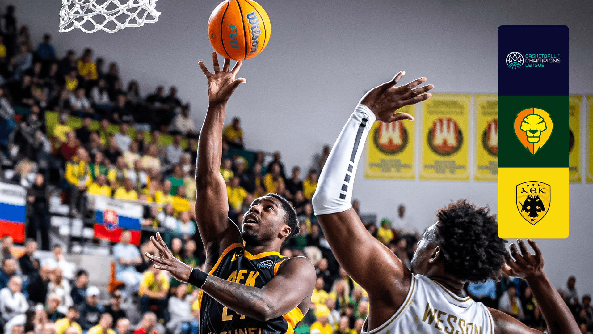 Watch Basketball Champions League action Levickí Patrioti takes on AEK.