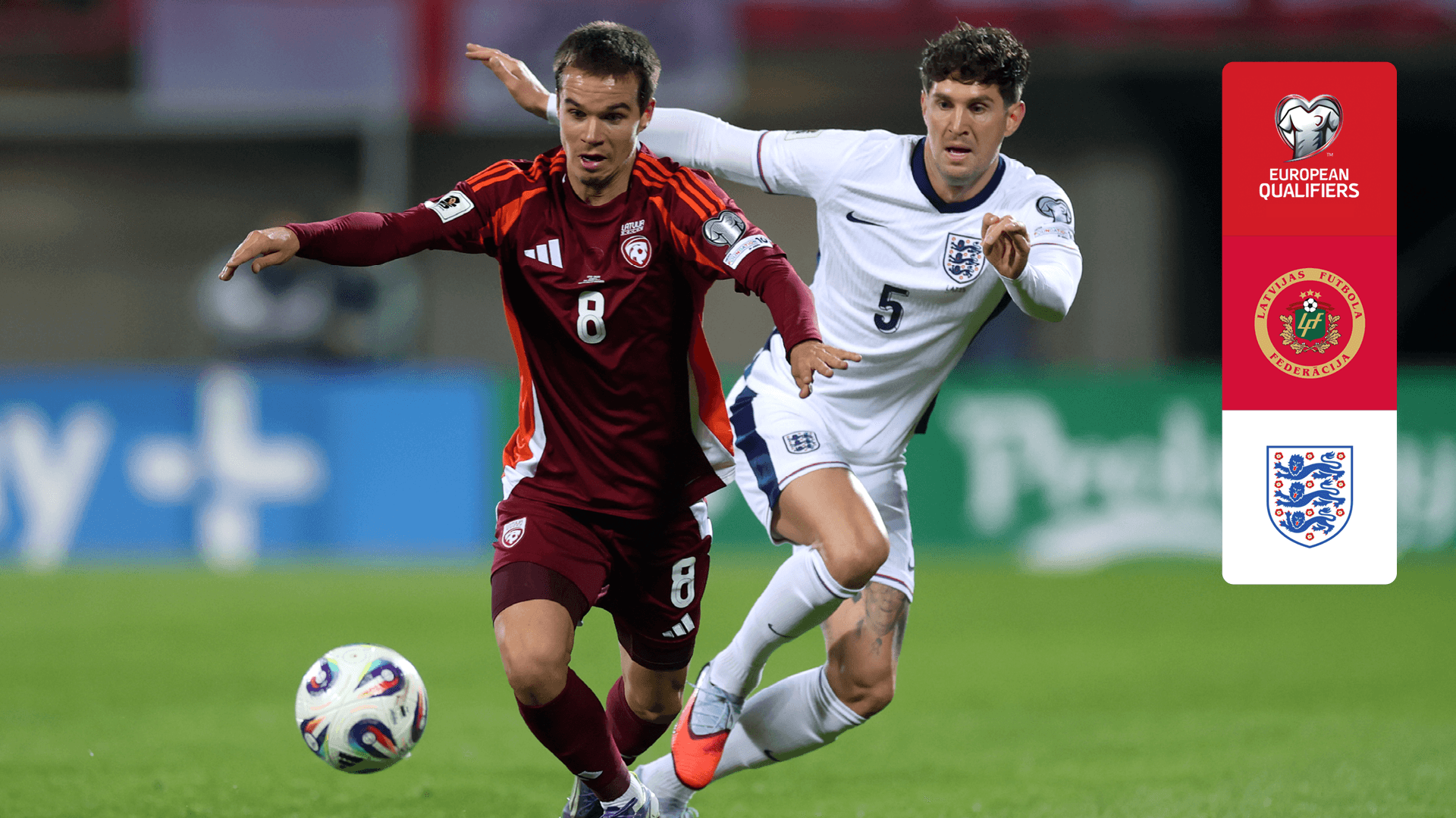 Regardez Latvia affronter England dans la UEFA World Cup Qualifiers.