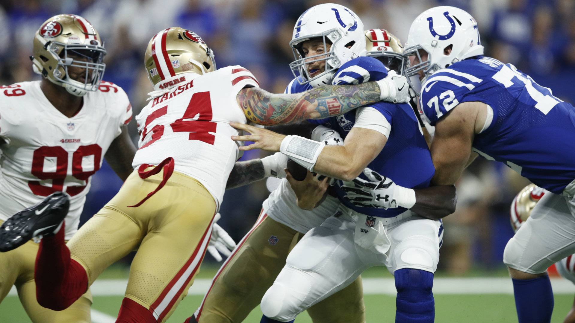Les Colts d'Indianapolis reçoivent les 49ers de San Francisco pour la troisième semaine de pré-saison. Adam Vinatieri a donné la victoire aux Colts (26-23) lors de la dernière confrontation entre les deux franchises au Lucas Oil Stadium.