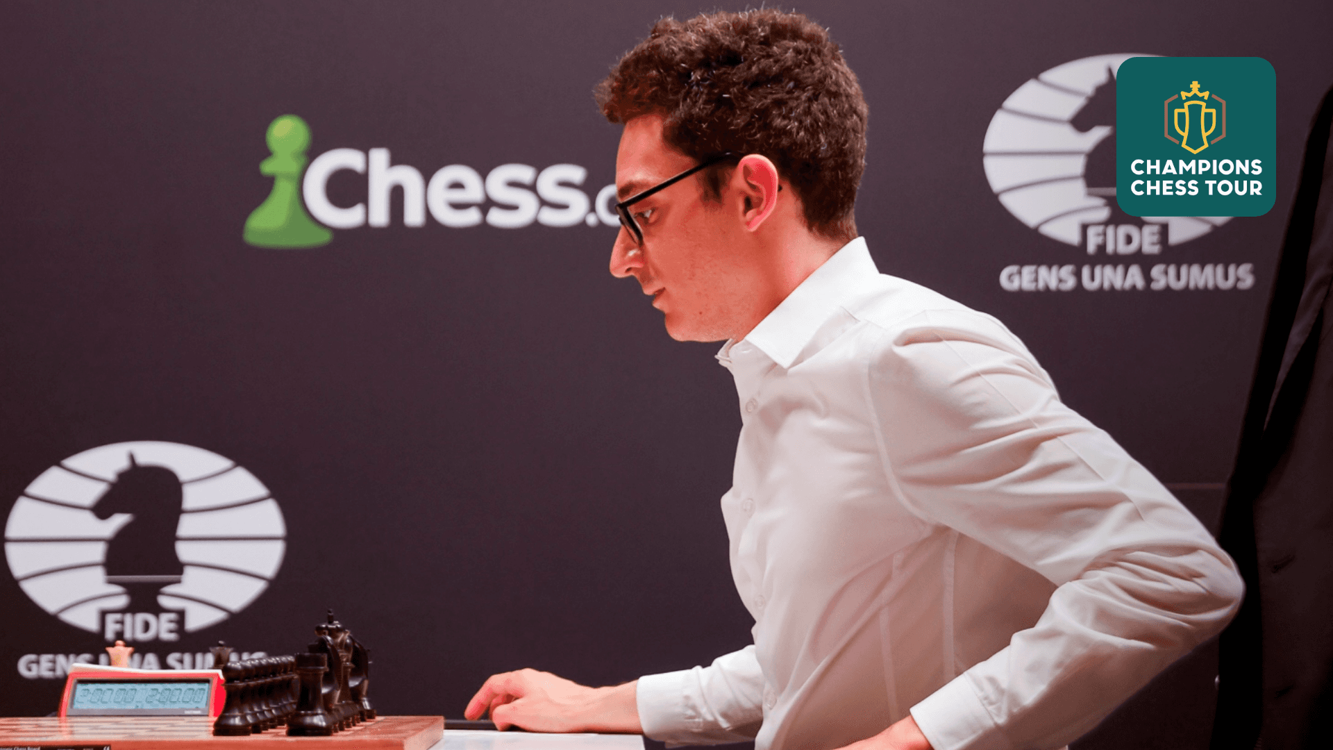 Action de la plus récente ronde des échecs Champions Chess Tour.