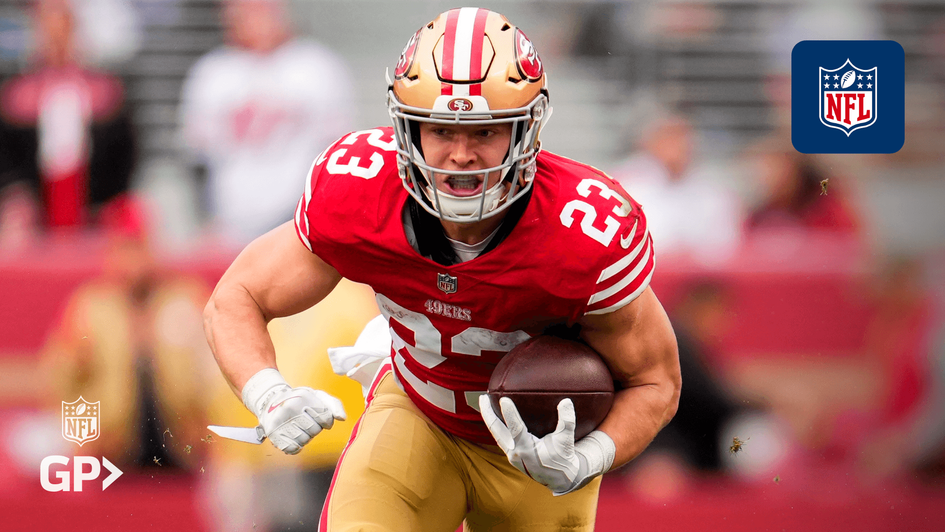 Le porteur de ballon des 49ers de San Francisco, Christian McCaffrey, réagit alors qu'il est sélectionné comme nouvelle star de la couverture de la prochaine édition de la série de jeux vidéo bien-aimée, Madden 25.