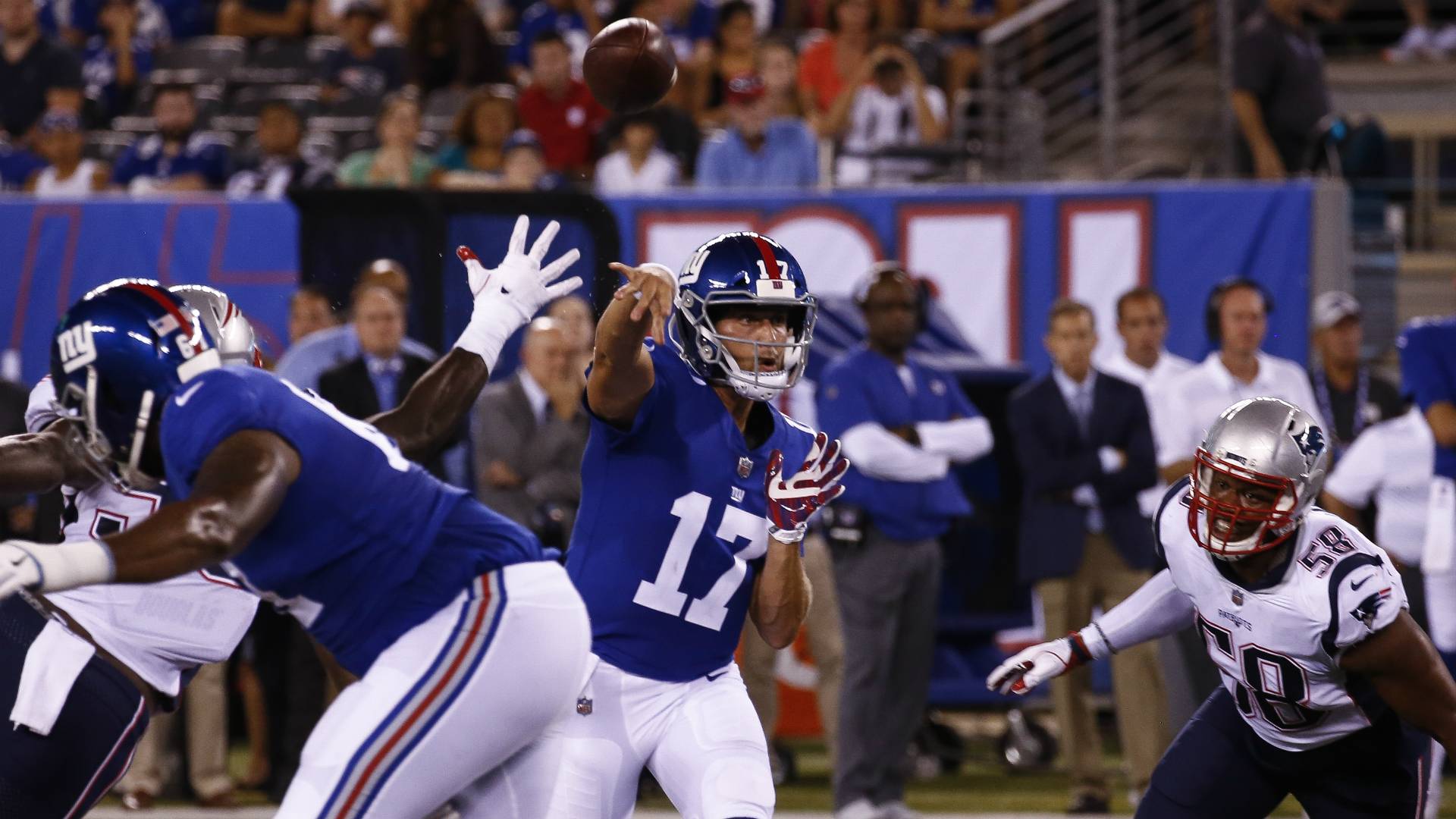 Pat Shurmur prépare sa première saison à la tête des Giants de New York, avec un dernier match de pré-saison face aux Patriots de la Nouvelle-Angleterre. Les Pats veulent quant à eux poursuivre leur domination sur l'AFC Est.