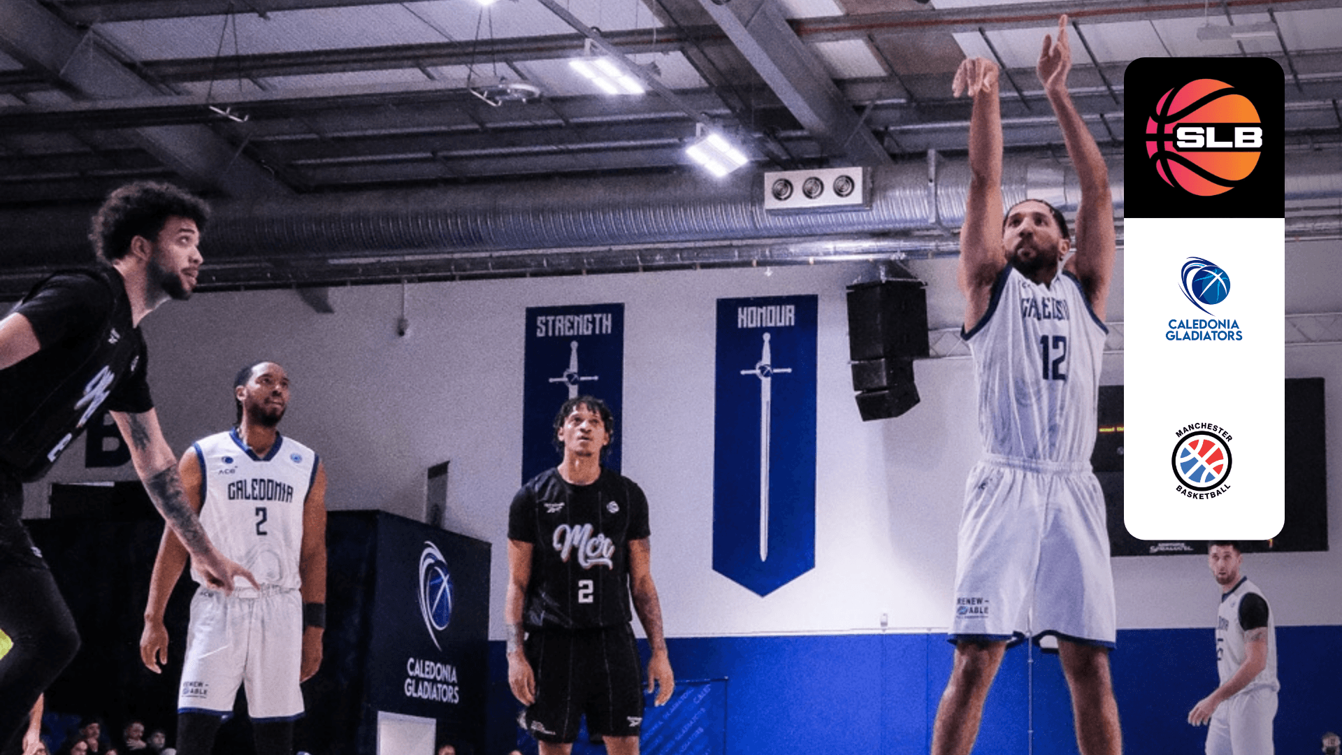 Regardez la dernière action de la Super League de basket-ball entre Caledonia Gladiators et Manchester Basketball.