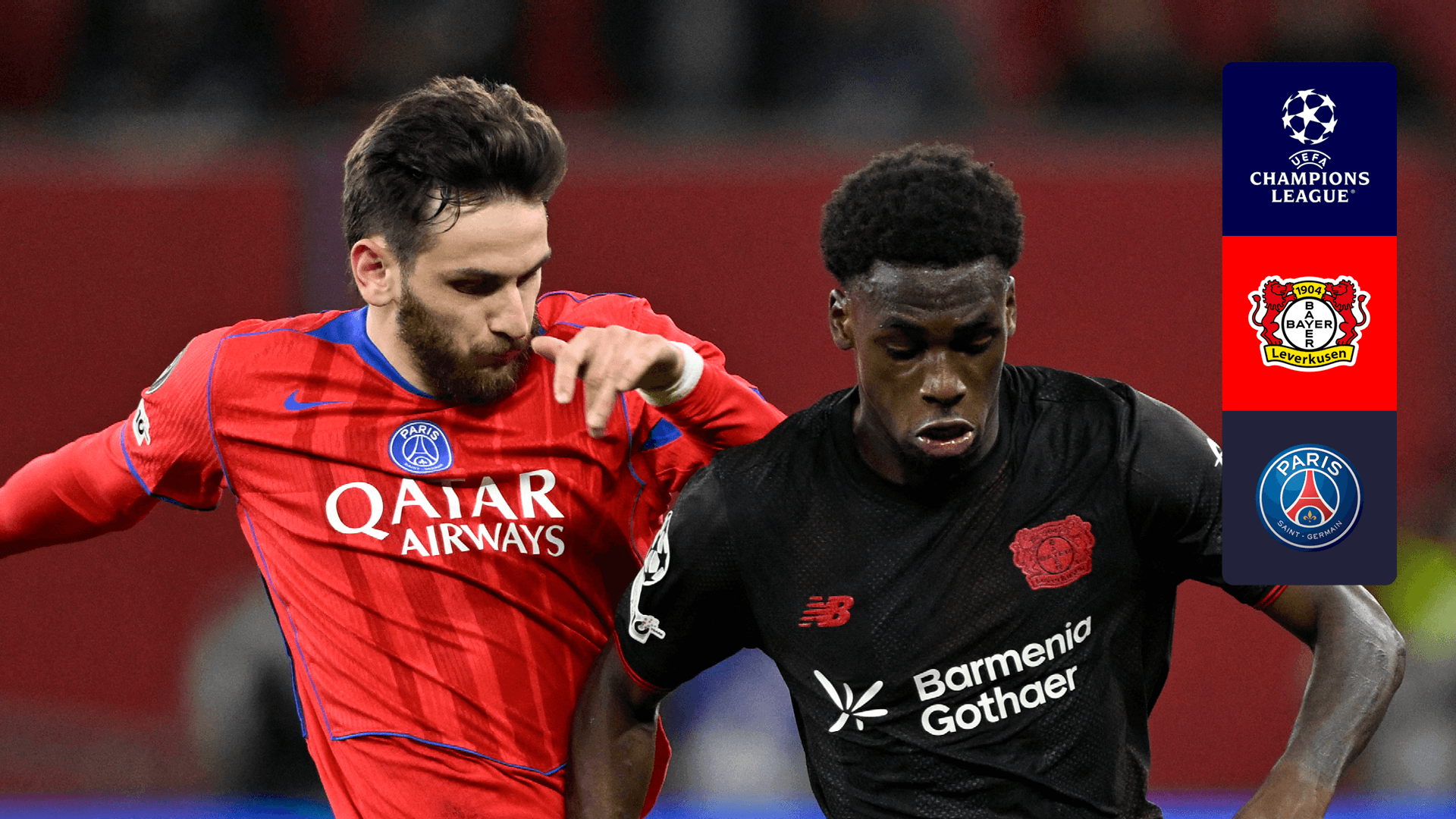 Regardez la UEFA Champions League alors que PSG affronte Bayer Leverkusen.
