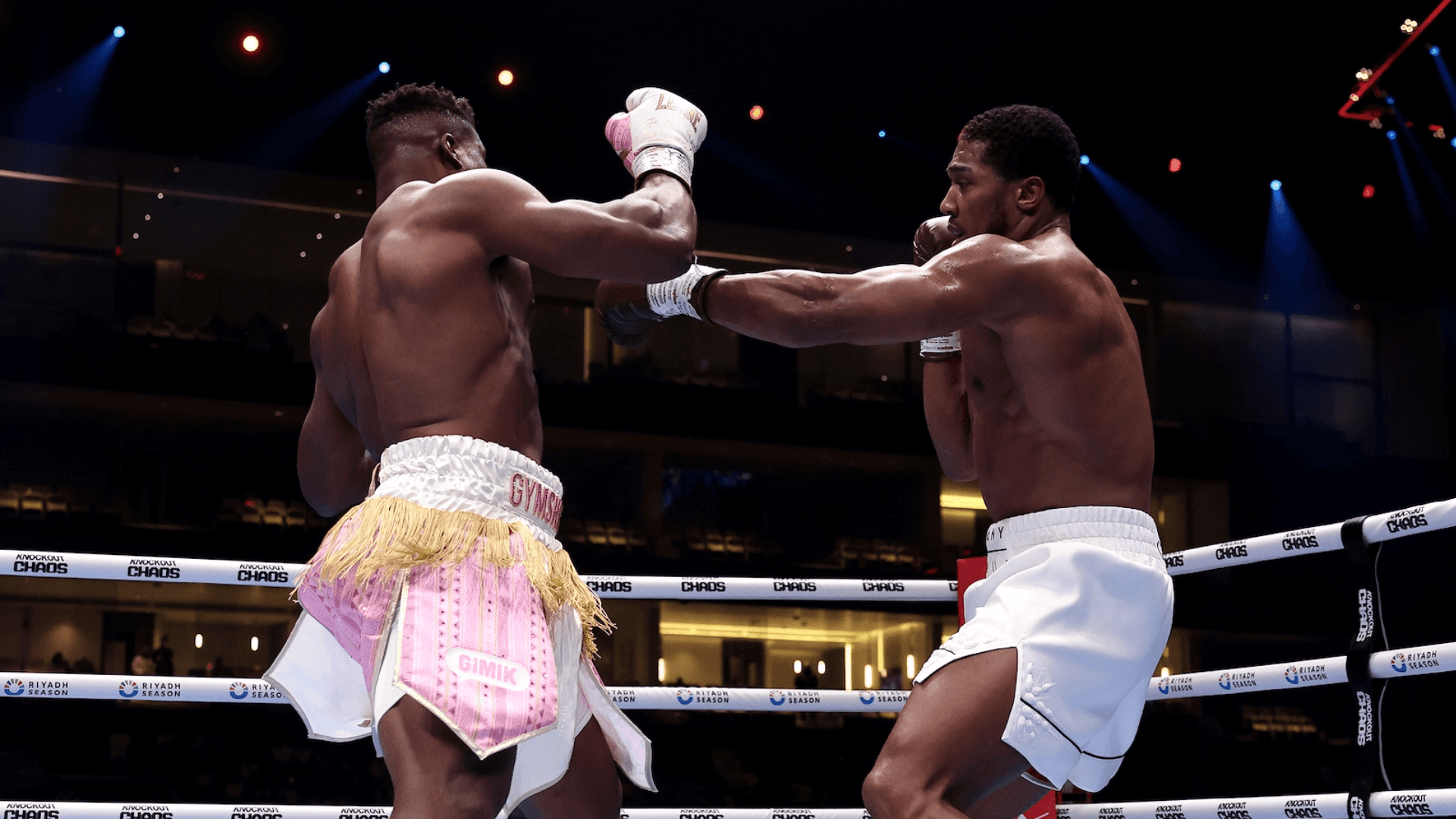 Anthony Joshua affronte Francis Ngannou, deux poids lourds superstars, dans l'événement principal du Knockout Chaos à Riyad.