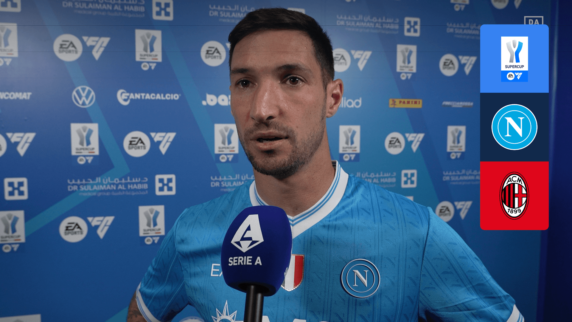 Découvrez la réaction de Matteo Politano après la rencontre entre Naples et l'AC Milan en Supercoupe d'Italie.
