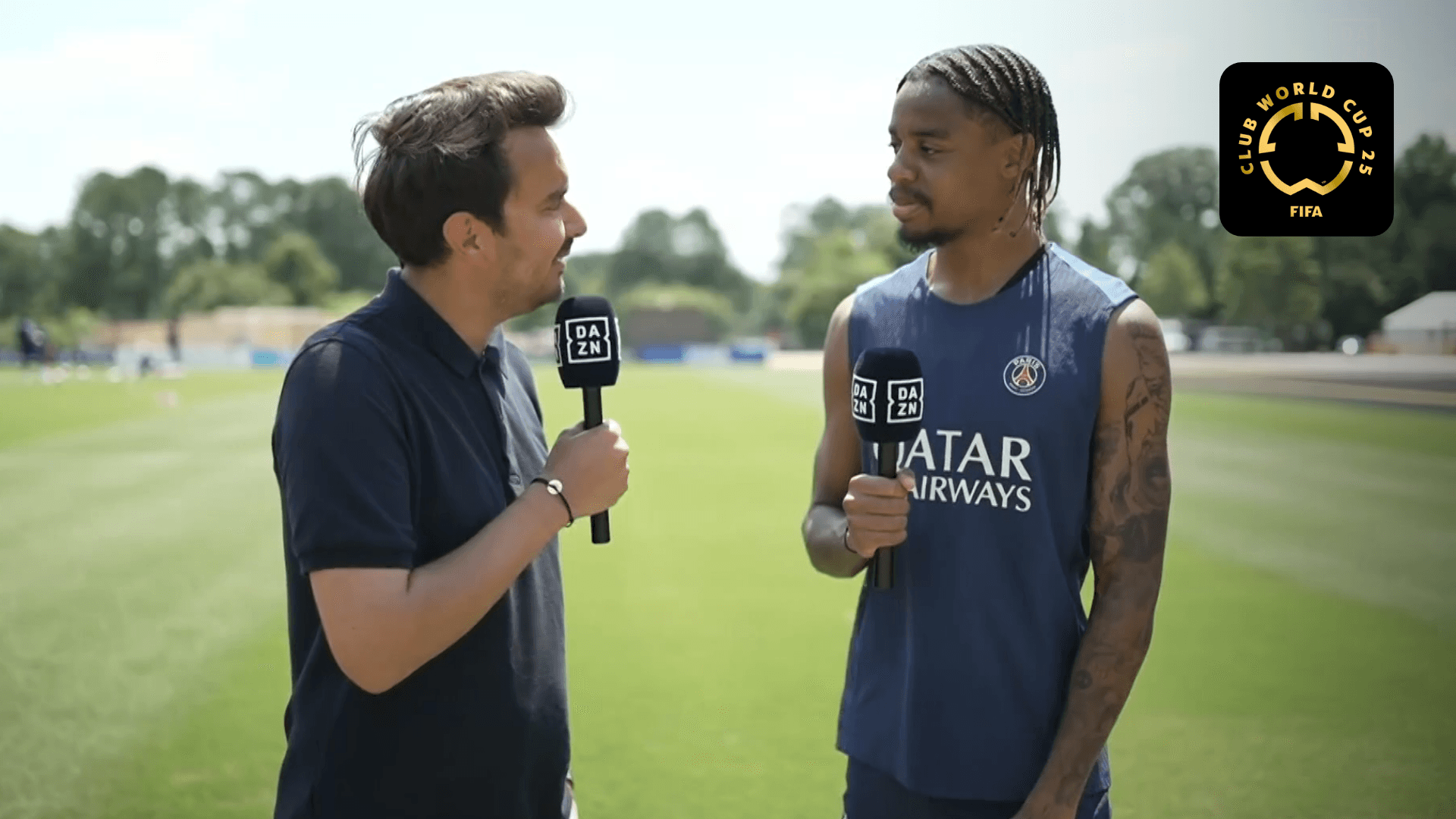 Bradley Barcola, Ousmane Dembélé and Senny Mayulu s'expriment au micro de notre envoyé spécial, Georges Quirino-Chaves, à vingt-quatre heures du quart de finale de la Coupe du monde des clubs de la FIFA face au Bayern Munich.