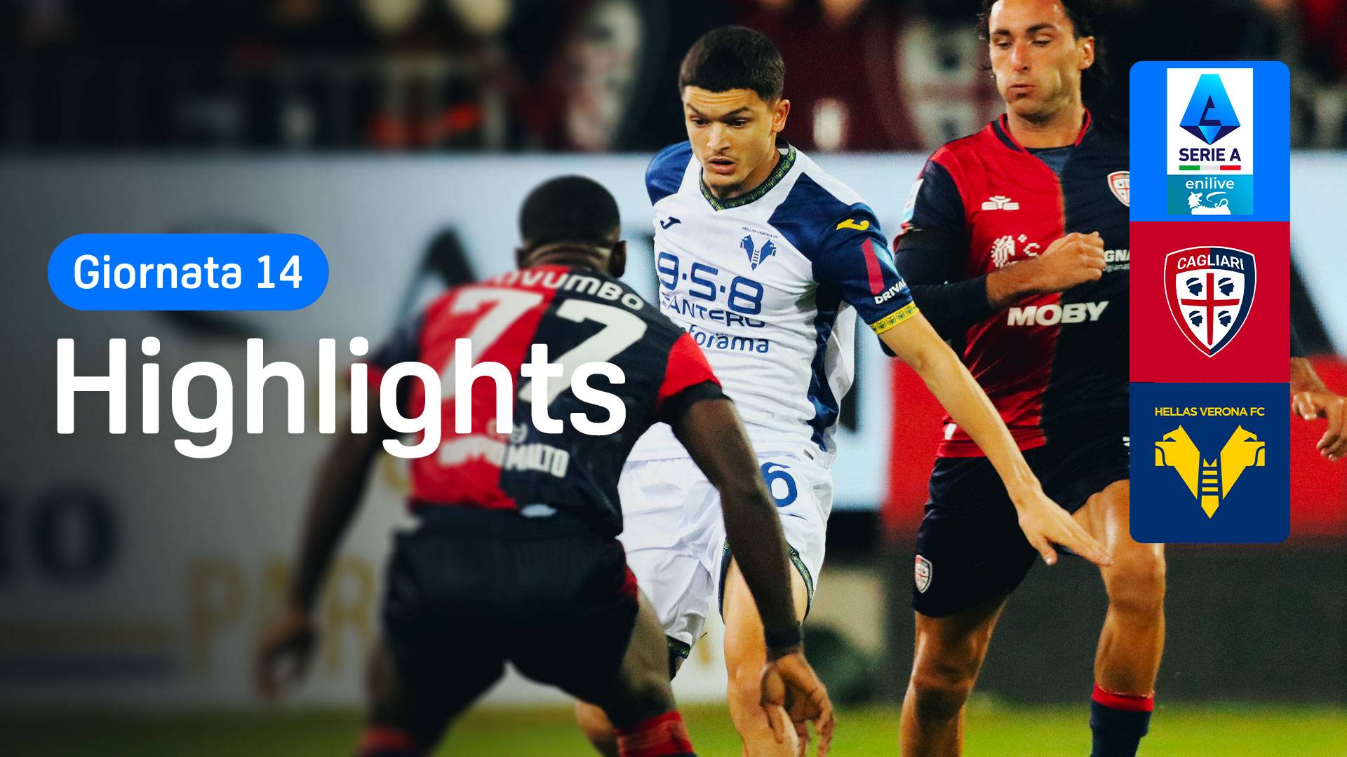 La 14esima giornata si apre all’Unipol Domus con la sfida in chiave salvezza tra Cagliari e Hellas Verona. Il pareggio dello scorso aprile ha portato alle due squadre un punto importante per evitare la retrocessione a fine stagione: come andrà stavolta? Segui la Serie A Enilive su DAZN! Telecronaca di Luca Farina, commento tecnico di Emanuele Giaccherini.