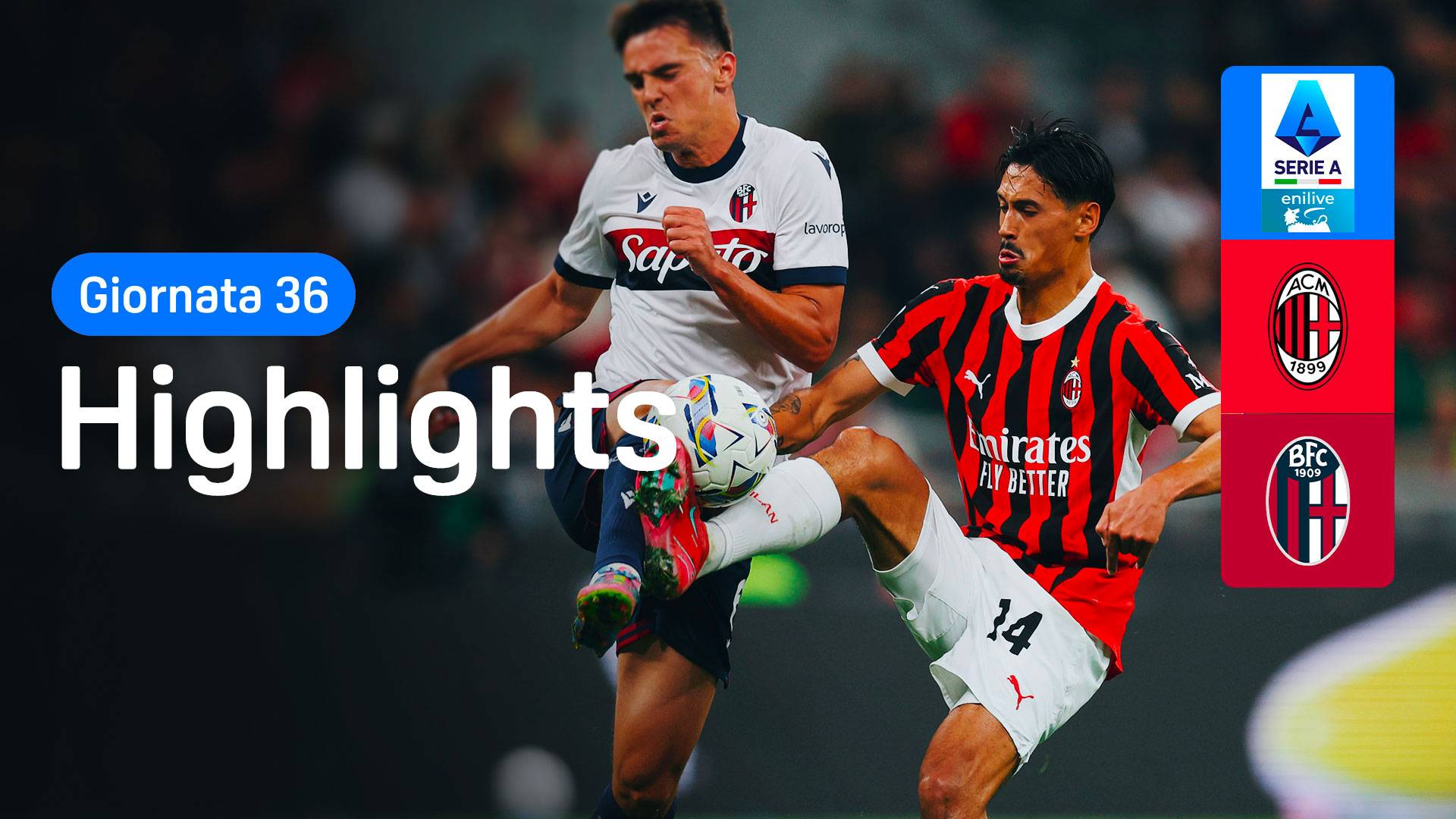 Milan e Bologna aprono la giornata in un antipasto della finale di Coppa Italia. I punti oggi a San Siro contano più per la corsa al quarto posto della squadra di Italiano, ma i rossoneri non vogliono sfigurare dopo che a febbraio proprio il ko del Dall’Ara pose fine alle speranze di Champions rossonere. Telecronaca di Riccardo Mancini, commento tecnico di Valon Behrami.