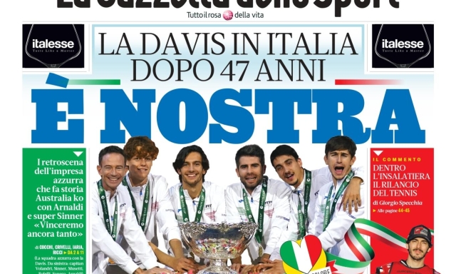 In edicola con la Gazzetta la ristampa del giornale sulla vittoria della Coppa Davis 2023