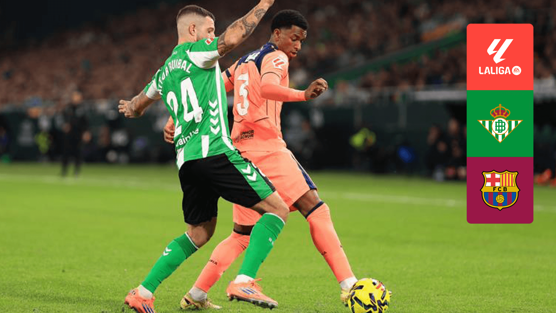 La bella vittoria nel derby contro il Siviglia ha confermato lo status d'alta classifica del Betis. A La Cartuja i biancoverdi ora ospitano il Barcellona di Flick a pochi giorni dall'impegno infrasettimanale contro l'Atletico: chi otterrà i tre punti? Segui LaLiga EA Sports su DAZN! Telecronaca di Luca Farina