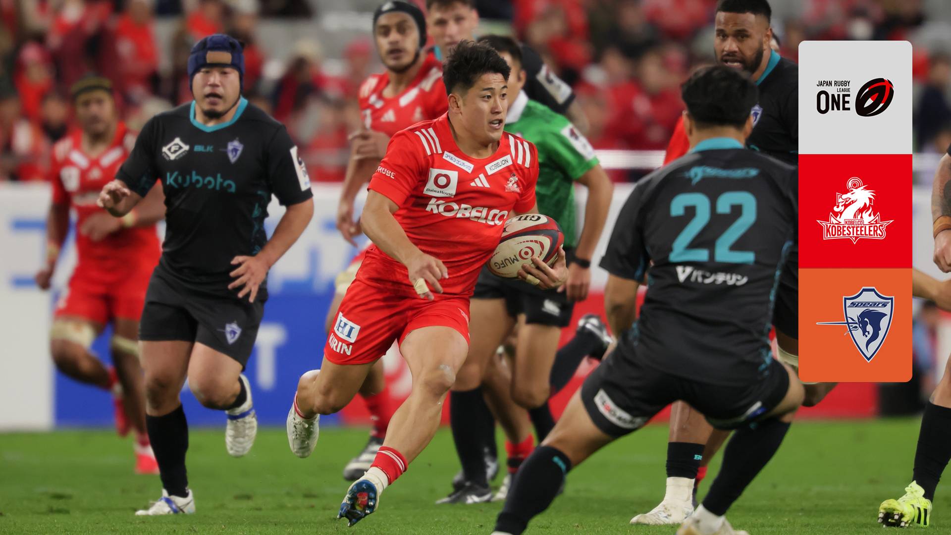 【解説:村上晃一 実況:矢野武】ジャパンラグビー リーグワンの熱戦をDAZNでお届け!★クラブプロフィール★【コベルコ神戸スティーラーズ】創設:1928年 ホストエリア:兵庫県、神戸市 主なタイトル:トップリーグ(2回) 全国社会人大会(9回) 昨季成績:3位【クボタスピアーズ船橋・東京ベイ】創設:1978年 ホストエリア:東京都江戸川区、中央区、千葉県市川市、船橋市、千葉市、市原市、成田市 主なタイトル:リーグワン(1回) 昨季成績:2位(©JRLO)