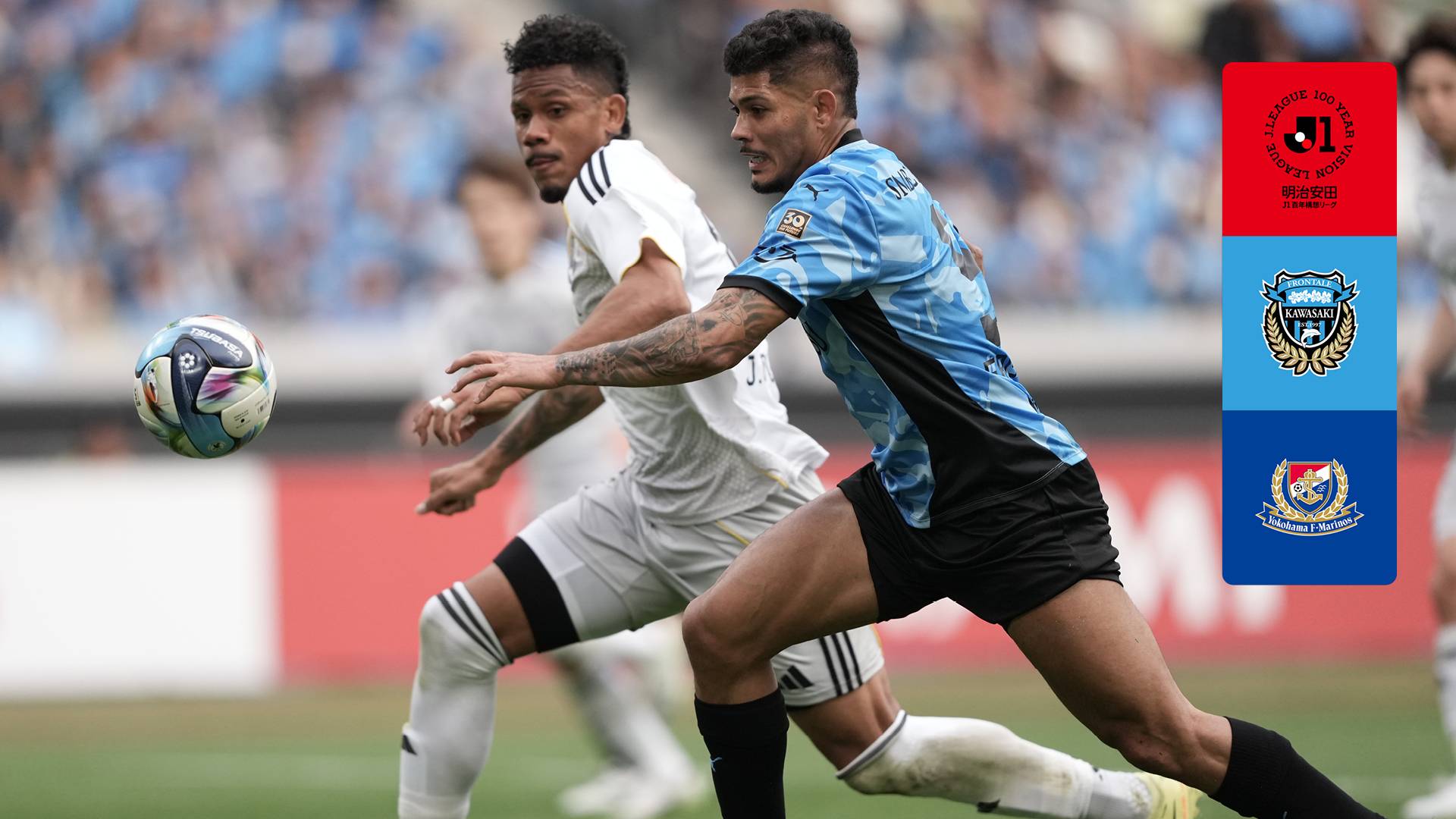 【解説:林陵平、田中裕介 実況:下田恒幸 インタビュアー:高木聖佳 MC:中川絵美里】J1の頂点を争い、これまで数々の名勝負を演じてきた2クラブによる“神奈川ダービー”。川崎Fは改修後初となる聖地・国立でのホームゲーム。佐々木の離脱が発表され、前節は谷口が途中交代となっており、今節は最終ラインの構成がカギを握る。対する横浜FMは遠野がキーマン。直近の2ゴールはいずれも難易度の高いボレーで奪っており、古巣戦でもその一振りに要注目だ #川崎F横浜FM (photo : ©J.LEAGUE) [J1L]