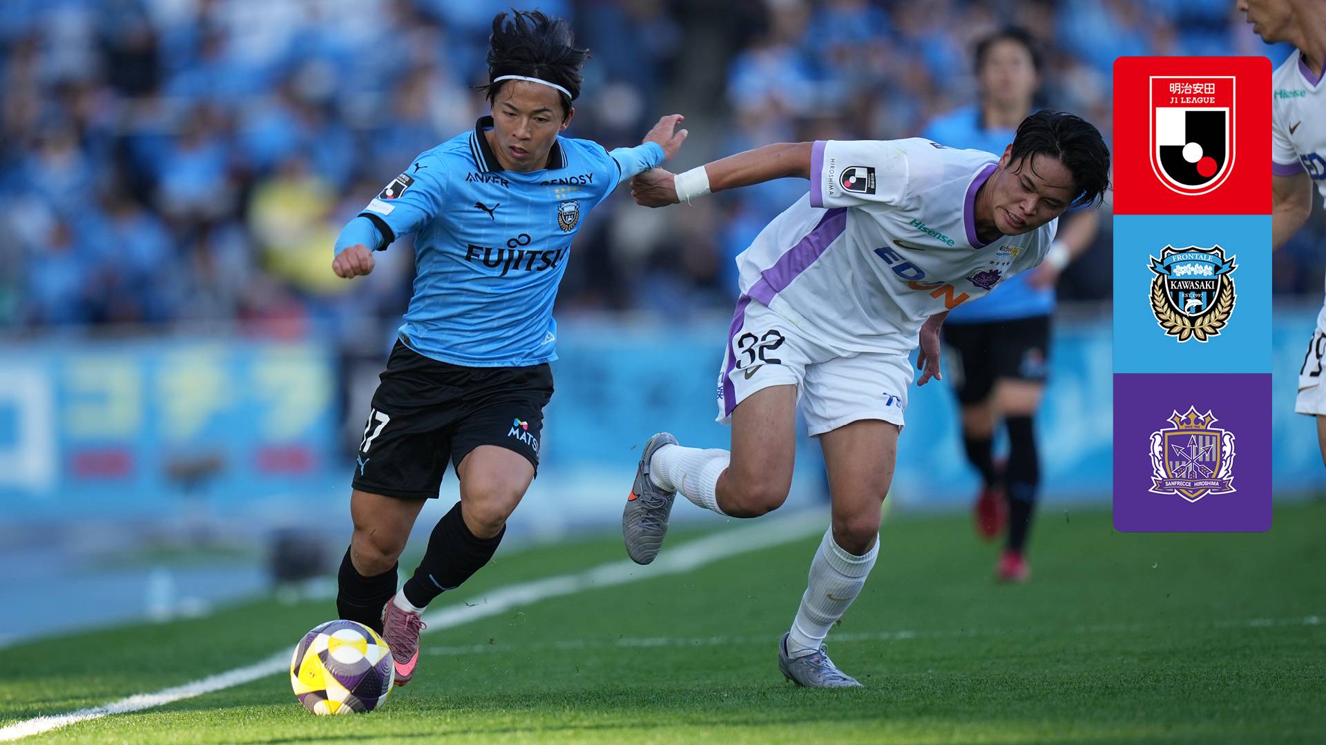 【解説:水沼貴史 実況:西岡明彦 インタビュアー:野中智子】6位・川崎Fは車屋、チョン・ソンリョン、ジェジエウ、安藤が今季限りで退団。“黄金時代”を支えた功労者4選手の等々力ラストマッチを勝利で飾るべく、今節もリーグ最多得点を誇る攻撃力を発揮したい。対する5位・広島もスキッベ監督の退任を発表。4年連続のトップ3入りも視野に入る中、今節は現体制では1分2敗の鬼門攻略を目指す #川崎F広島 (photo : ©J.LEAGUE)