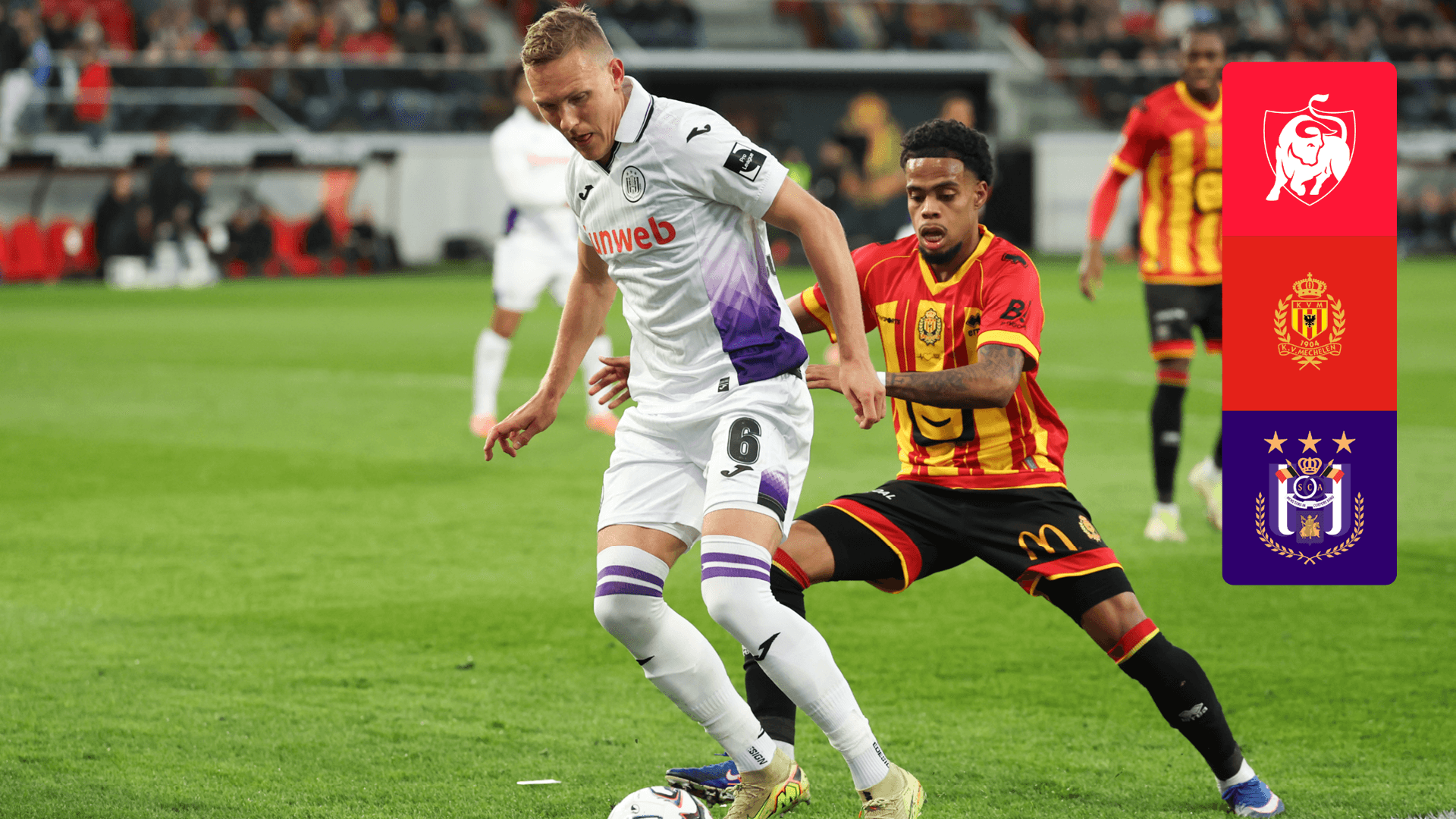 KV Mechelen neemt het op tegen RSC Anderlecht in de Jupiler Pro League. Start uitzending: 18u10.